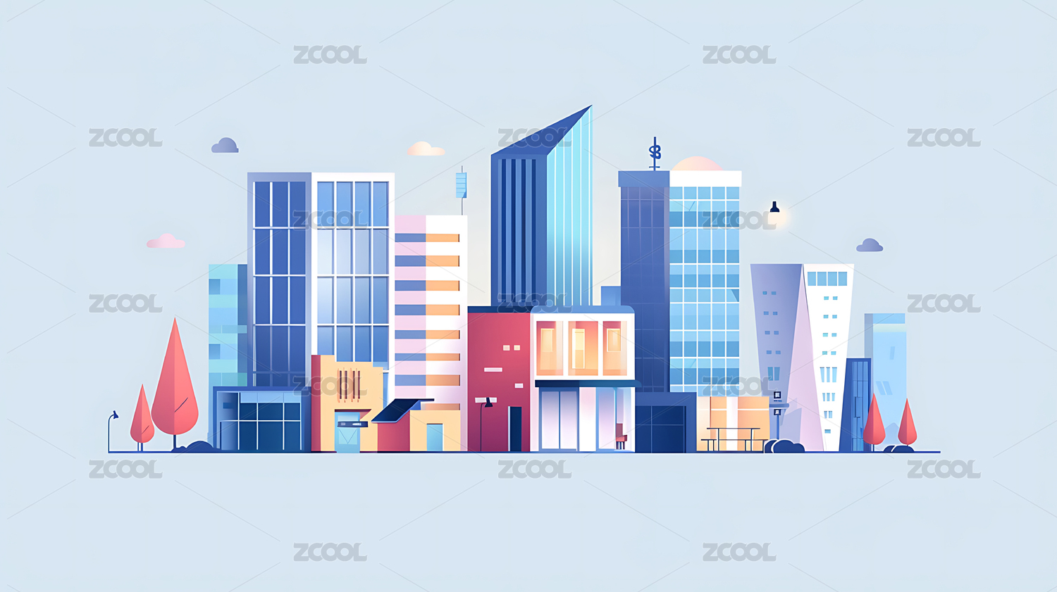 壁纸,插画,插图,城市,二次元,高楼大厦,绘画,建筑,蓝天白云,梦幻