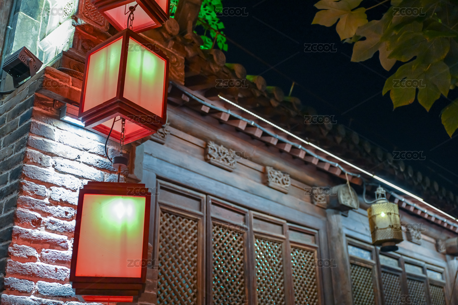 夜色中古建筑红灯笼