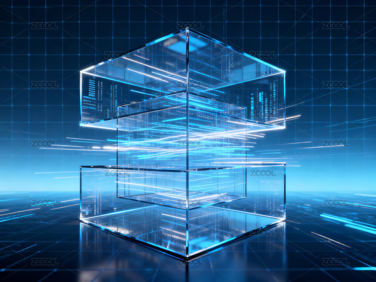 3D科技蓝色透明立方体背景