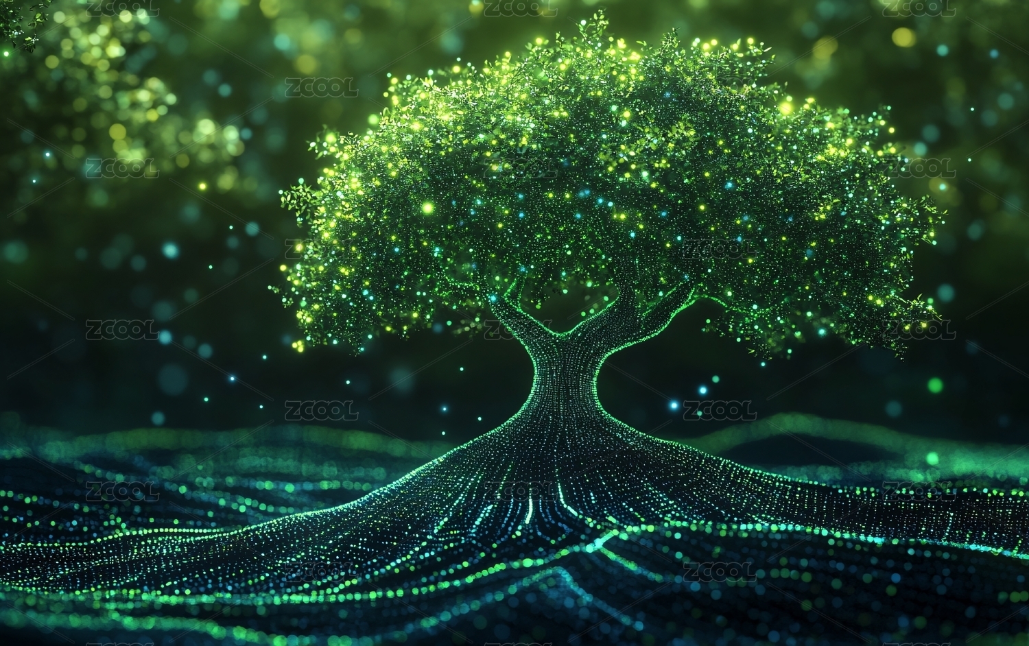 抽象数字树,科技与自然的融合