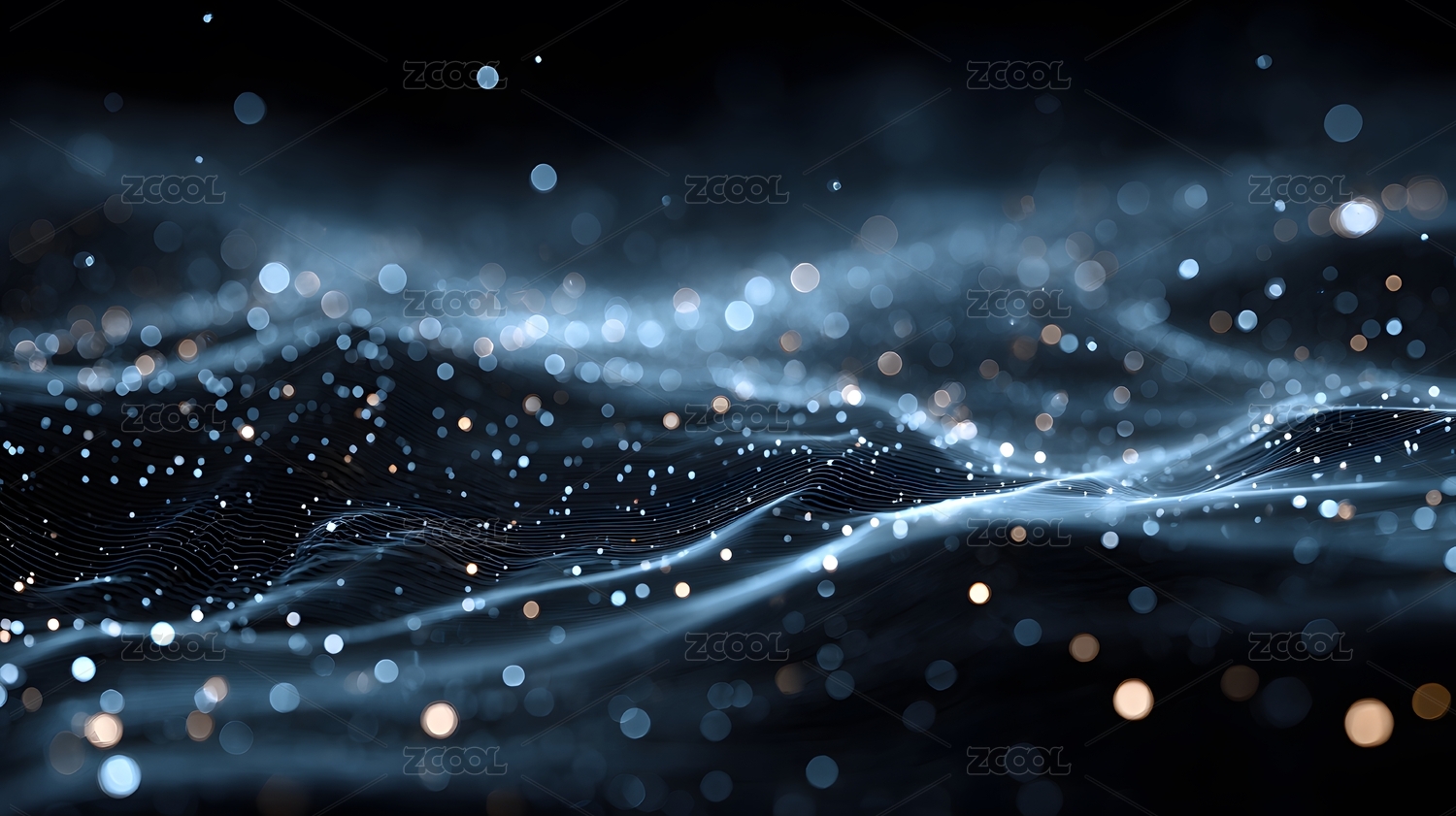 深蓝色波浪抽象海报背景,散发着橙色光点