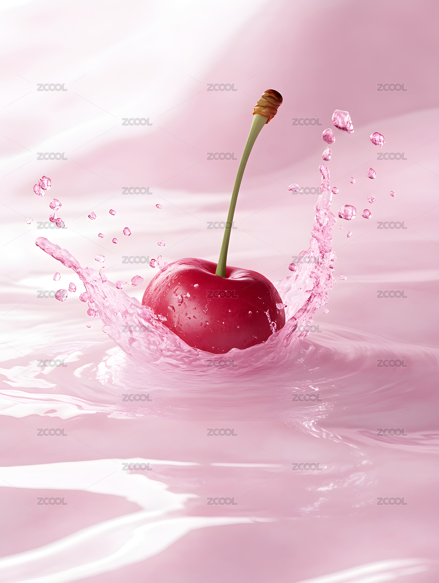 樱桃入水溅起粉色水花