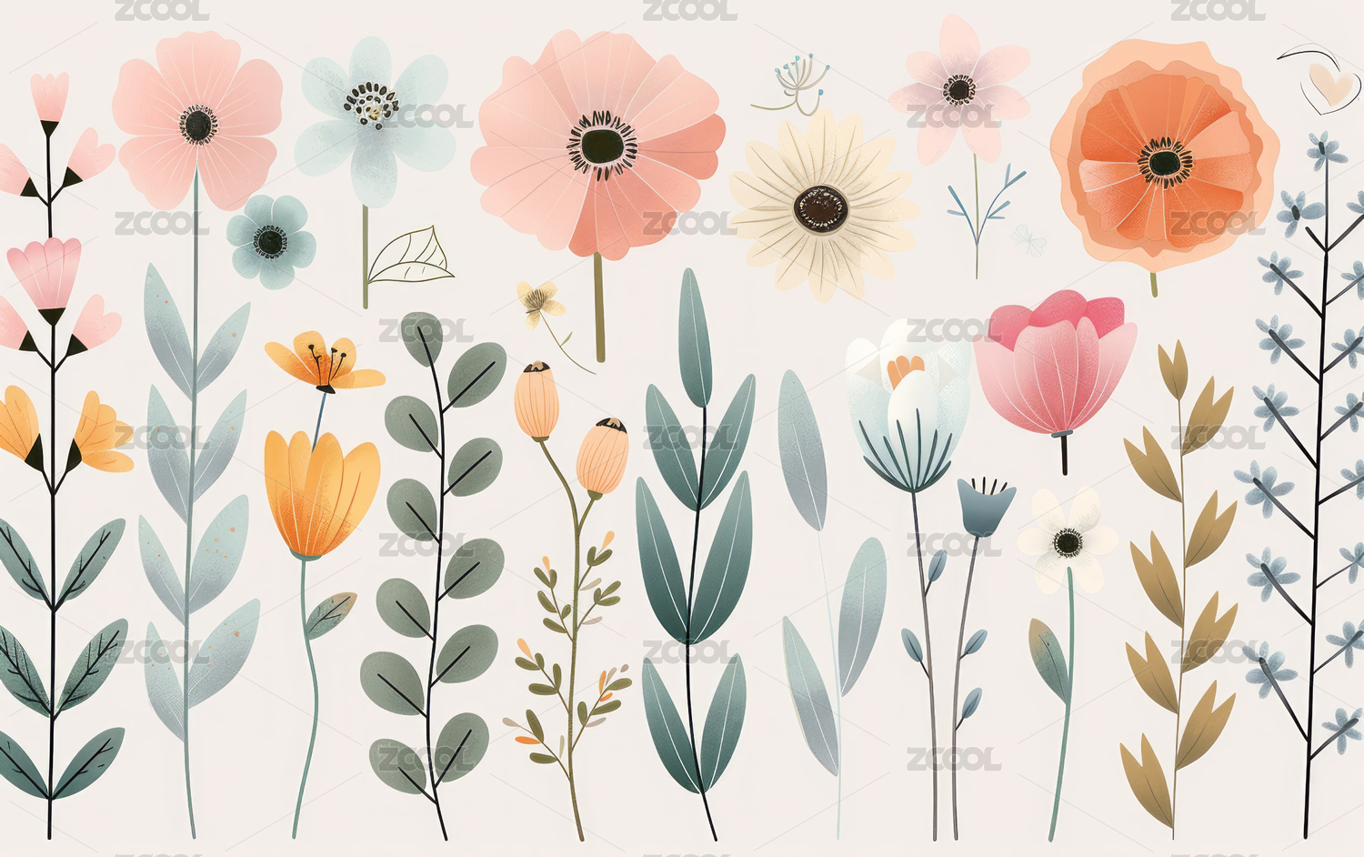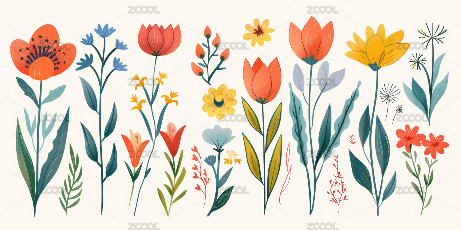 五种花卉插画