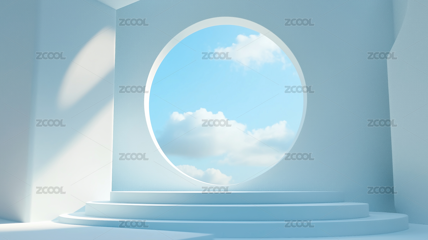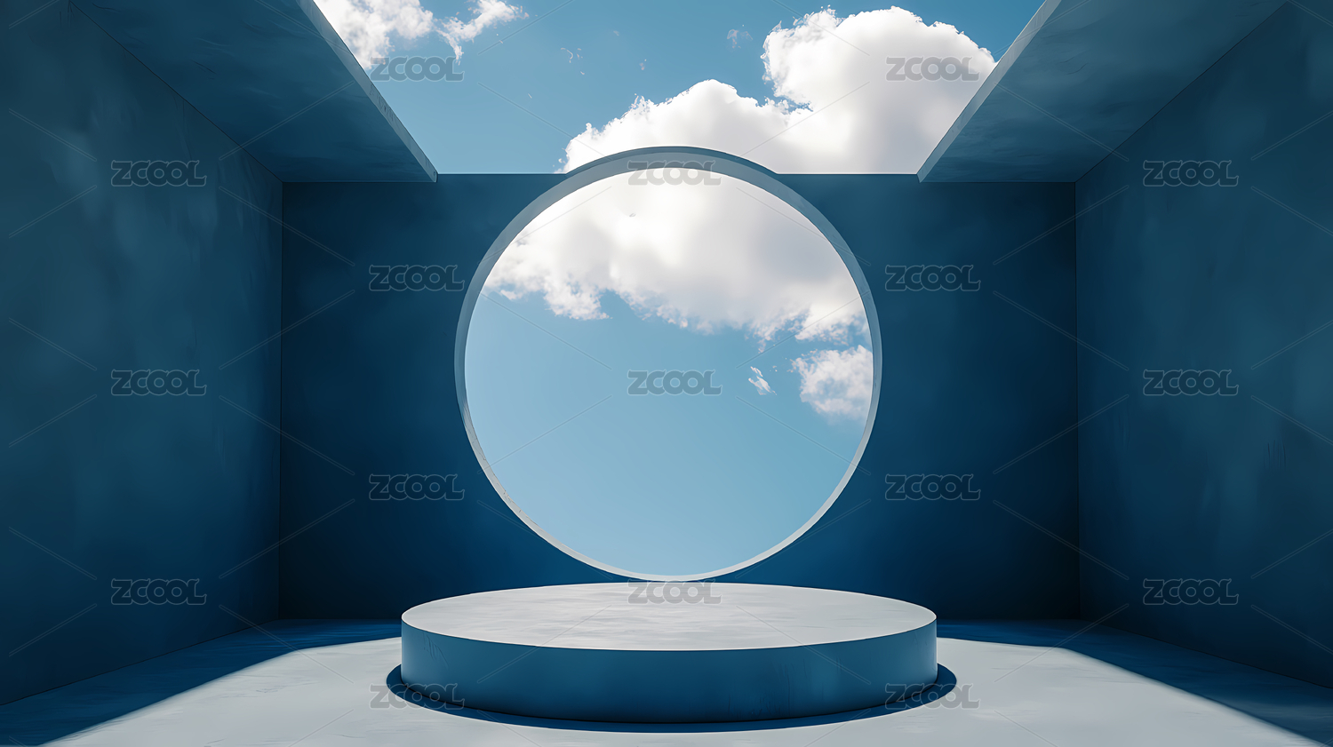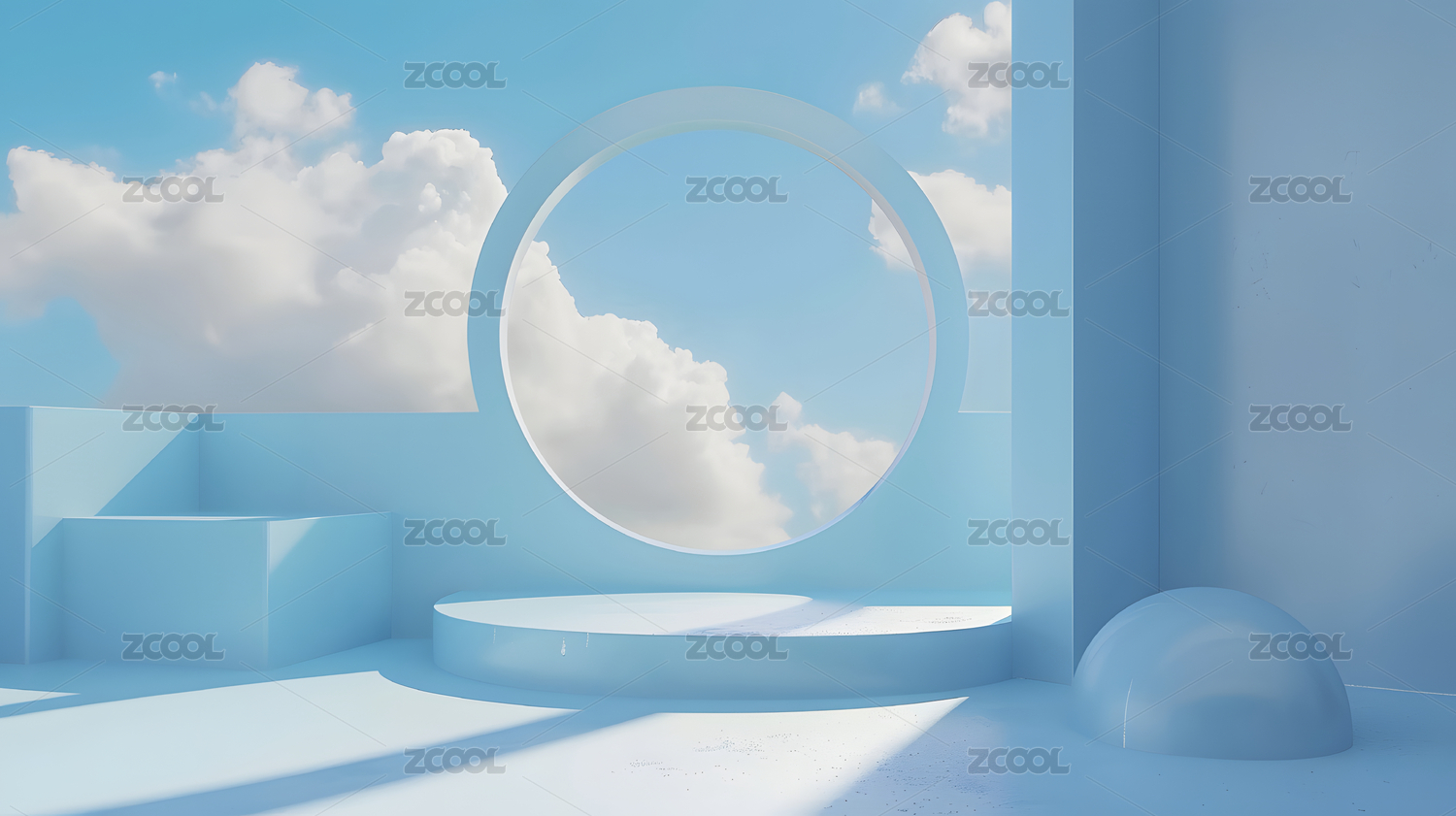 展示,蓝色,清新,建筑,质感,3d,天空,白云,展台