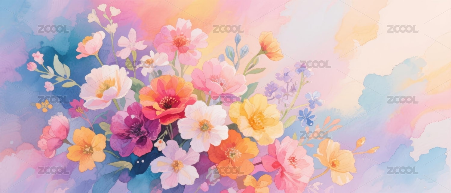 缤纷花朵水彩风装饰背景