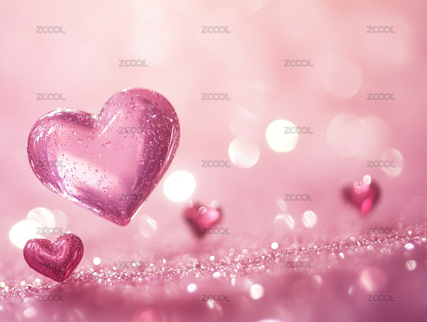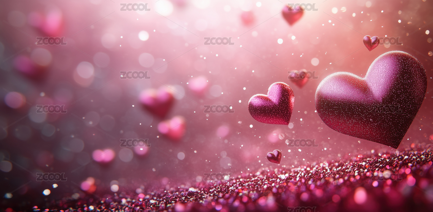 粉色闪光爱心与细碎装饰