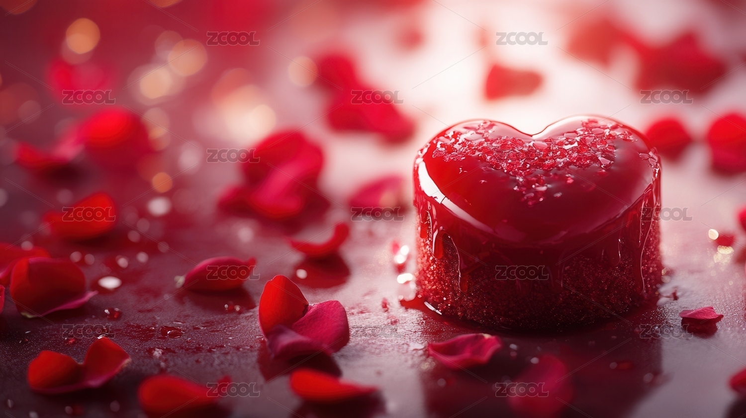 情人节红心蛋糕与玫瑰花瓣
