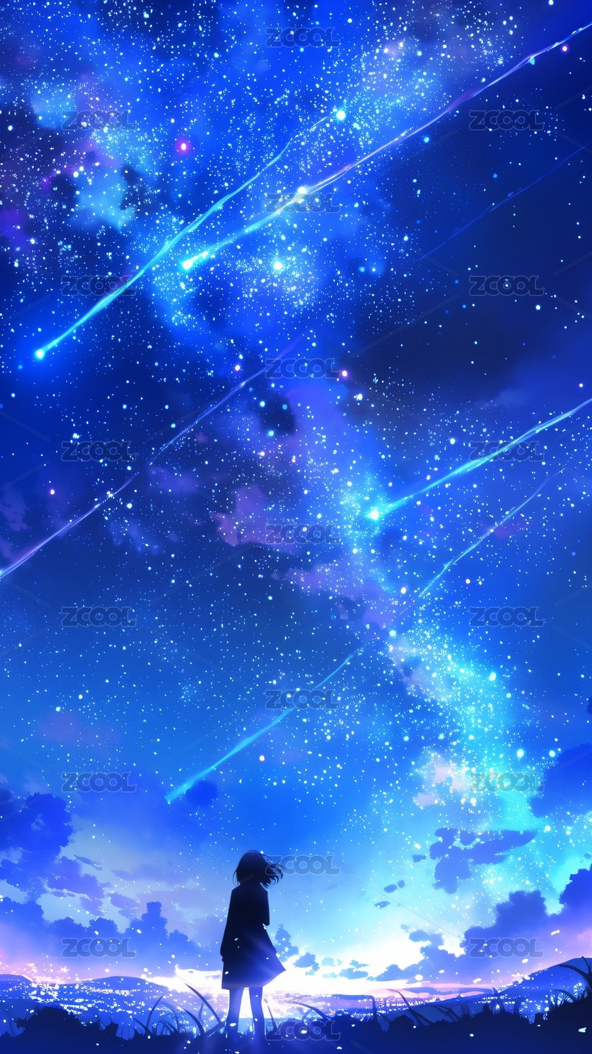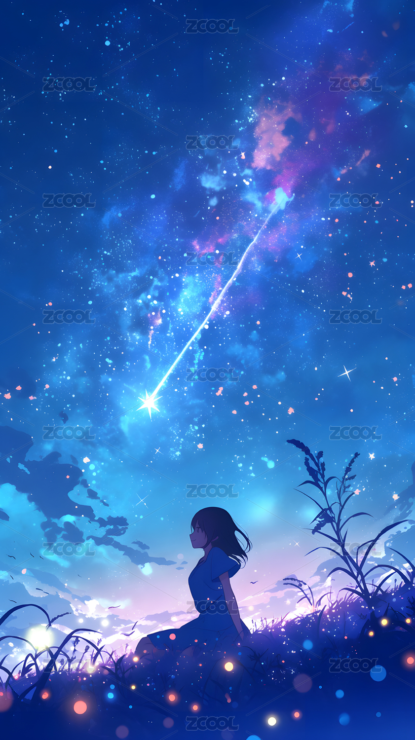 少女仰望璀璨星空