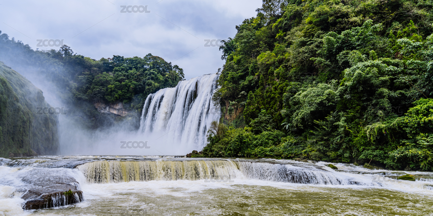 蓝天白云下水雾弥漫的黄果树大瀑布