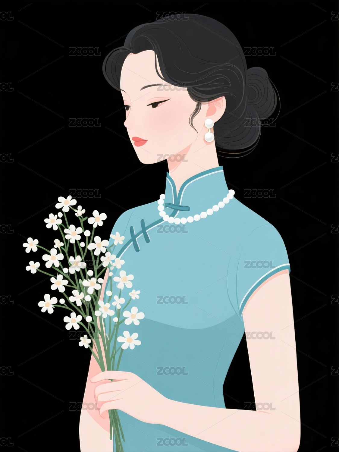 HEYYTGF2020,女子,民国,旗袍,复古,爱情,国风,插画,人物,古装