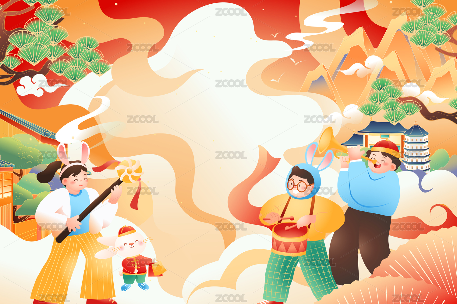 春节兔年矢量插画