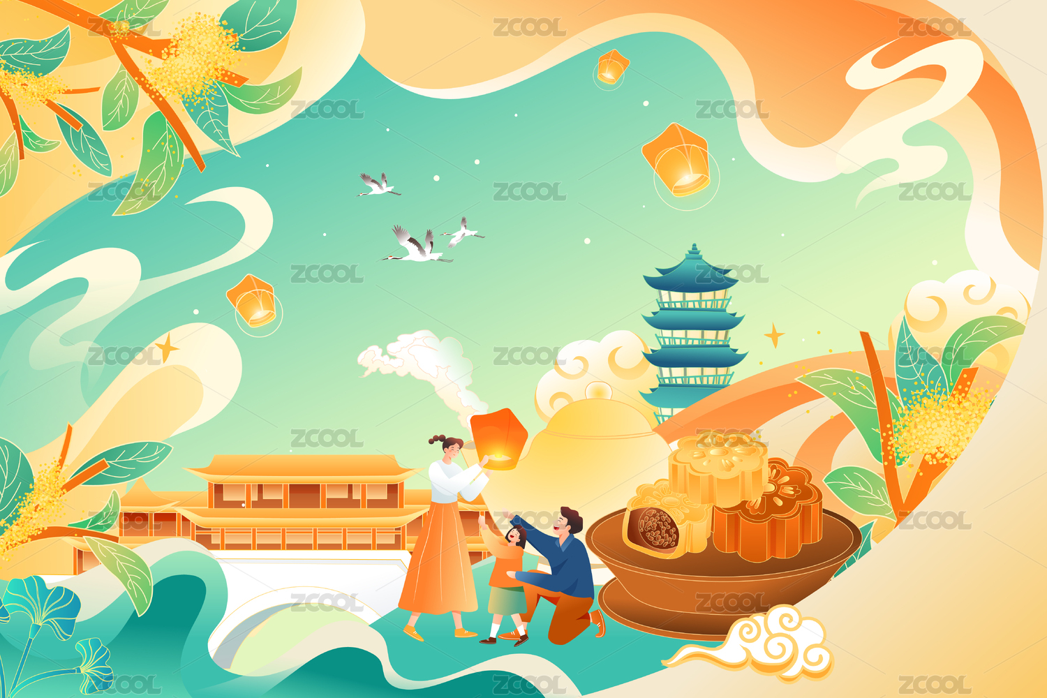 中秋节矢量插画