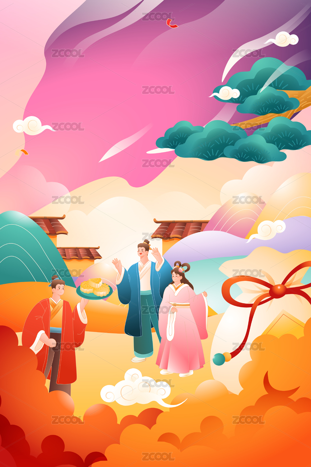 矢量,卡通,渐变,扁平,插画,插图,背景,节日,自然,庆祝