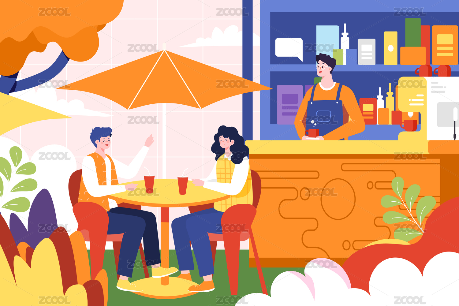 矢量,卡通,渐变,扁平,插画,插图,风景,学生,出游,情侣