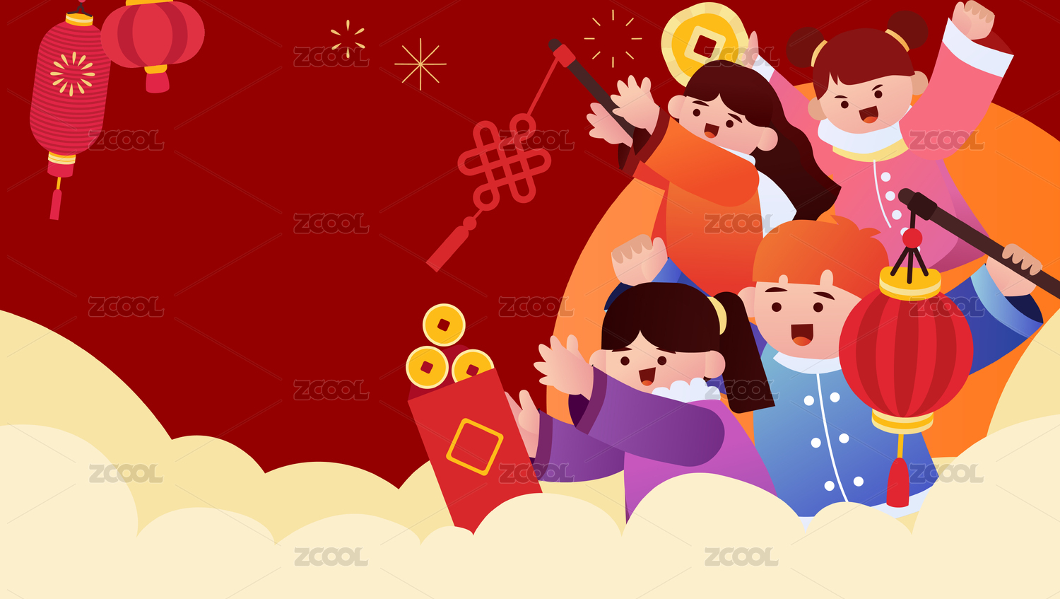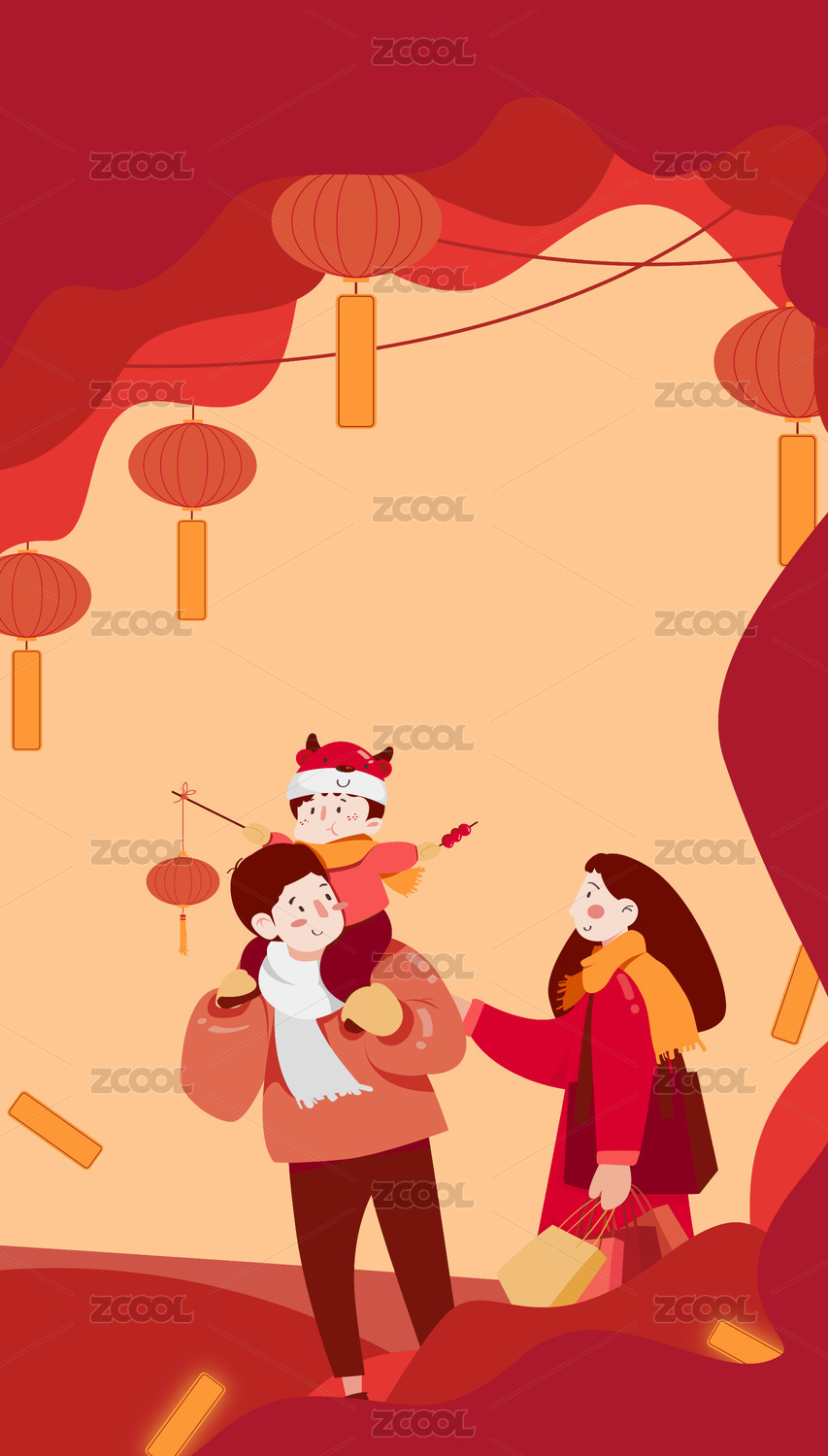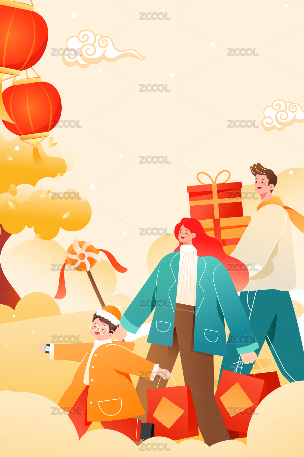 新春龙年过年人物传统喜庆矢量插画素材背景