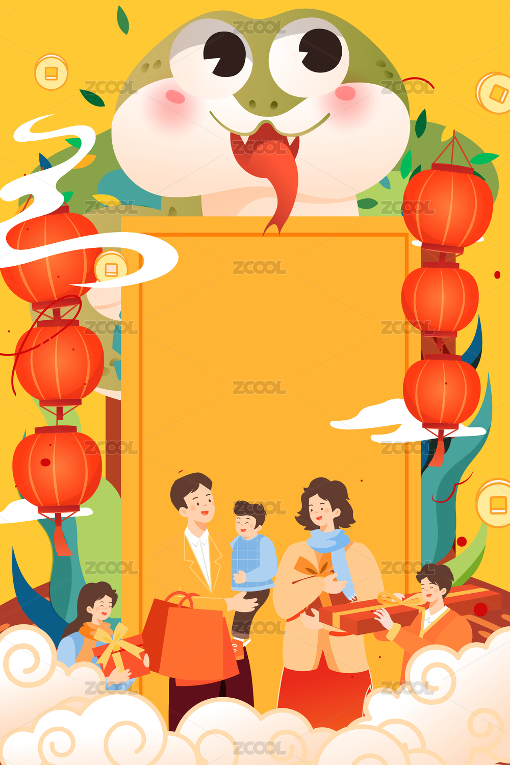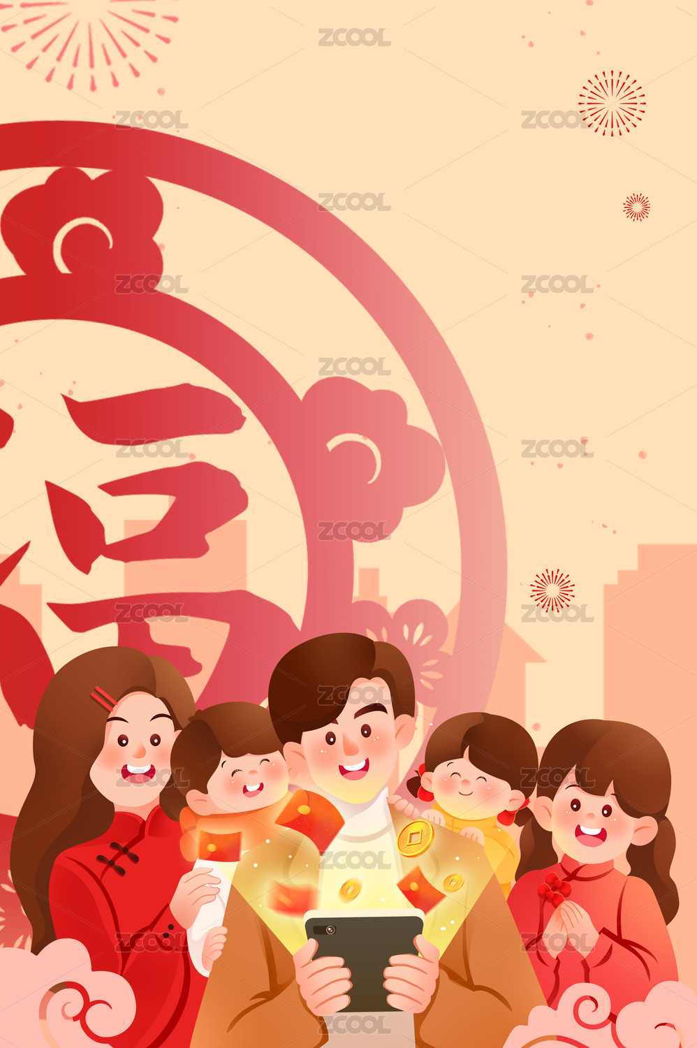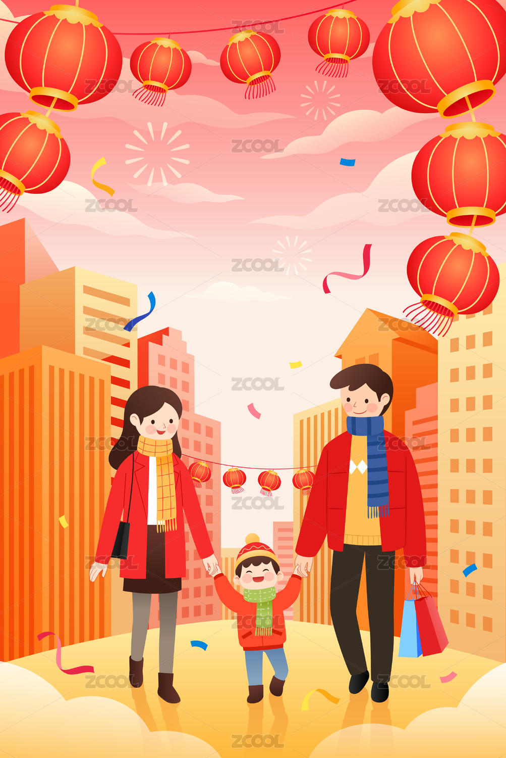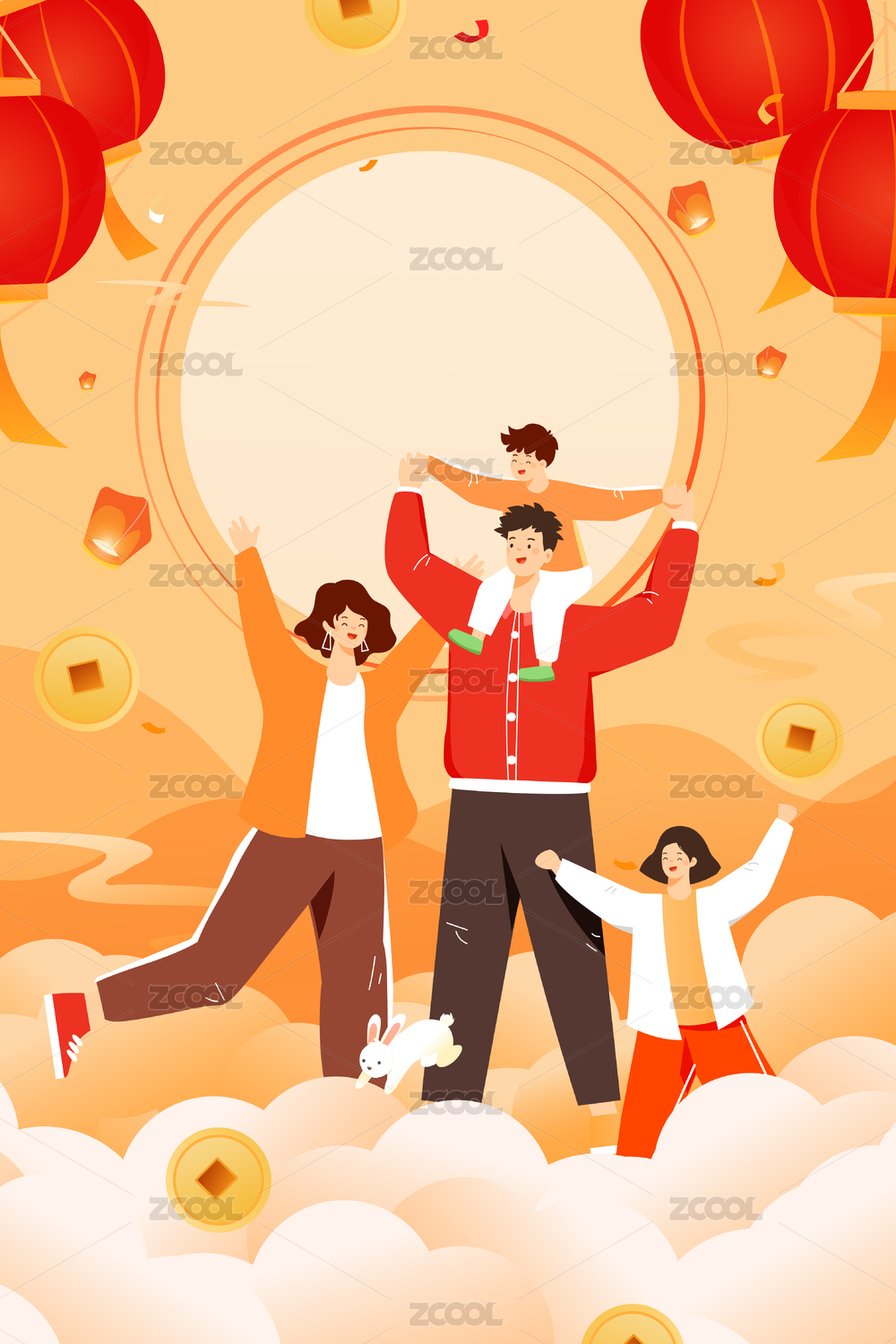 新春龙年过年人物传统喜庆矢量插画素材背景