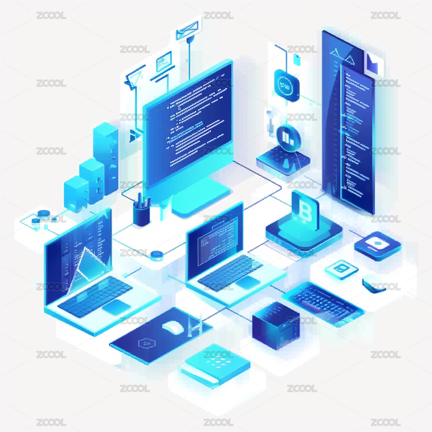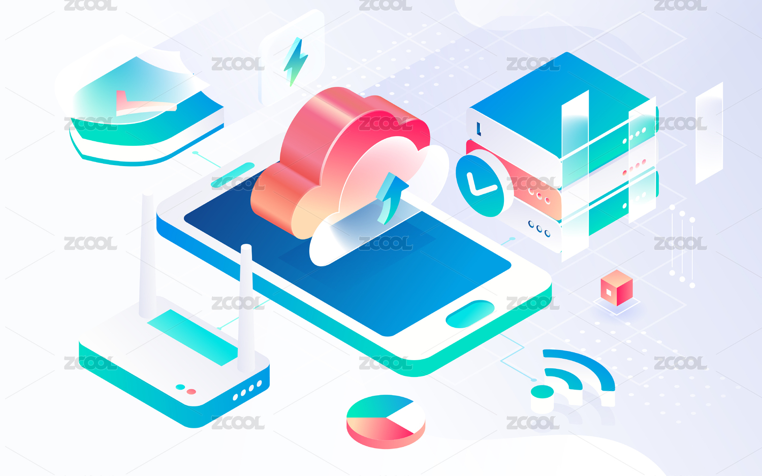 互联网通信网络连接数据安全分析等距插画