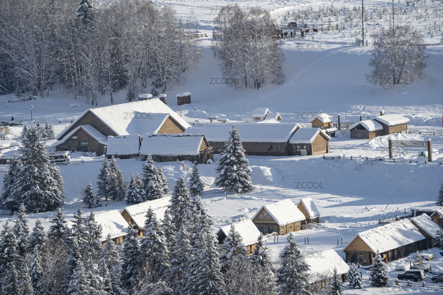 新疆,阿勒泰,禾木,冬季,冬,雪,寒冷,森林,房子,村子