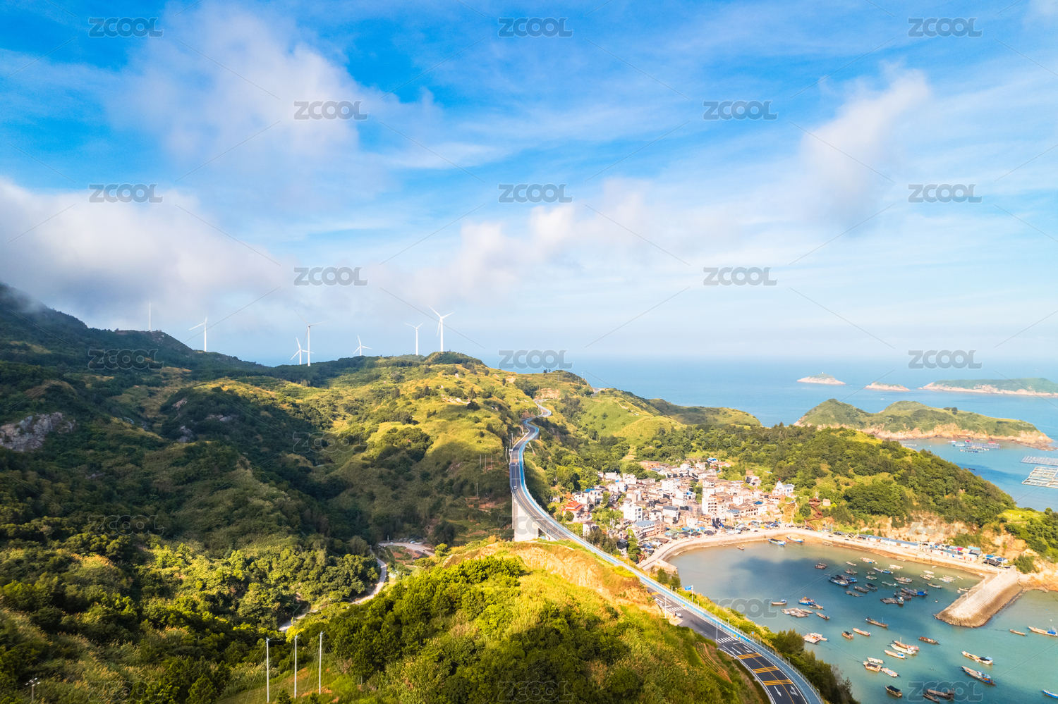 福建霞浦海尾角村镇海岛风力发电自然风光