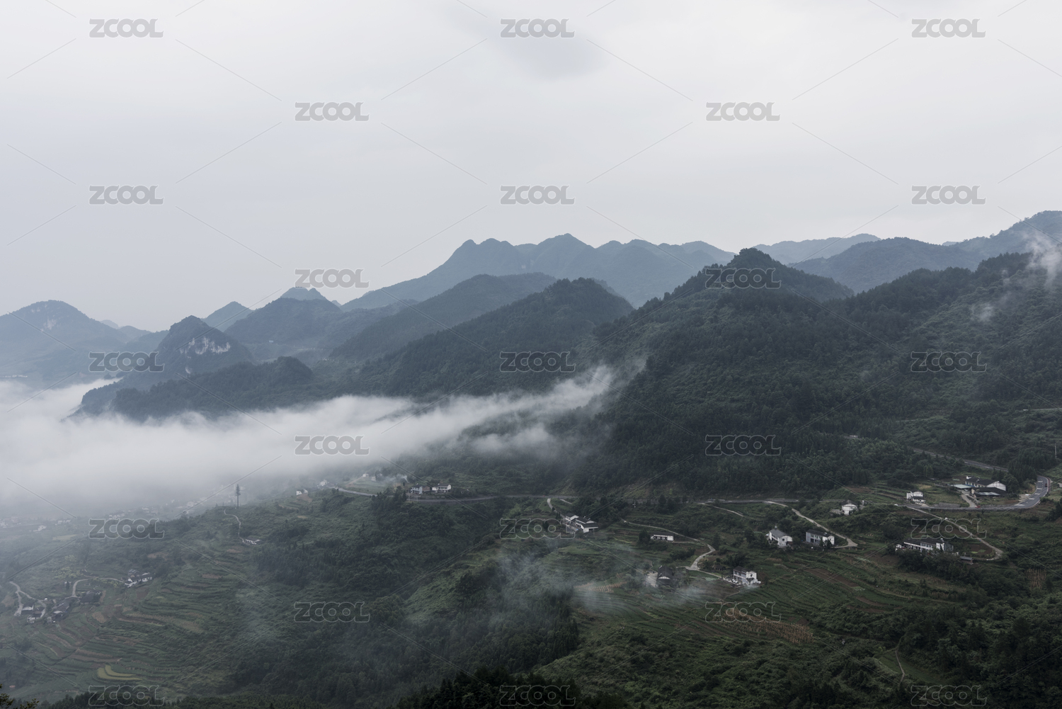 夏季早晨重庆綦江区黑山镇南门村的晨雾