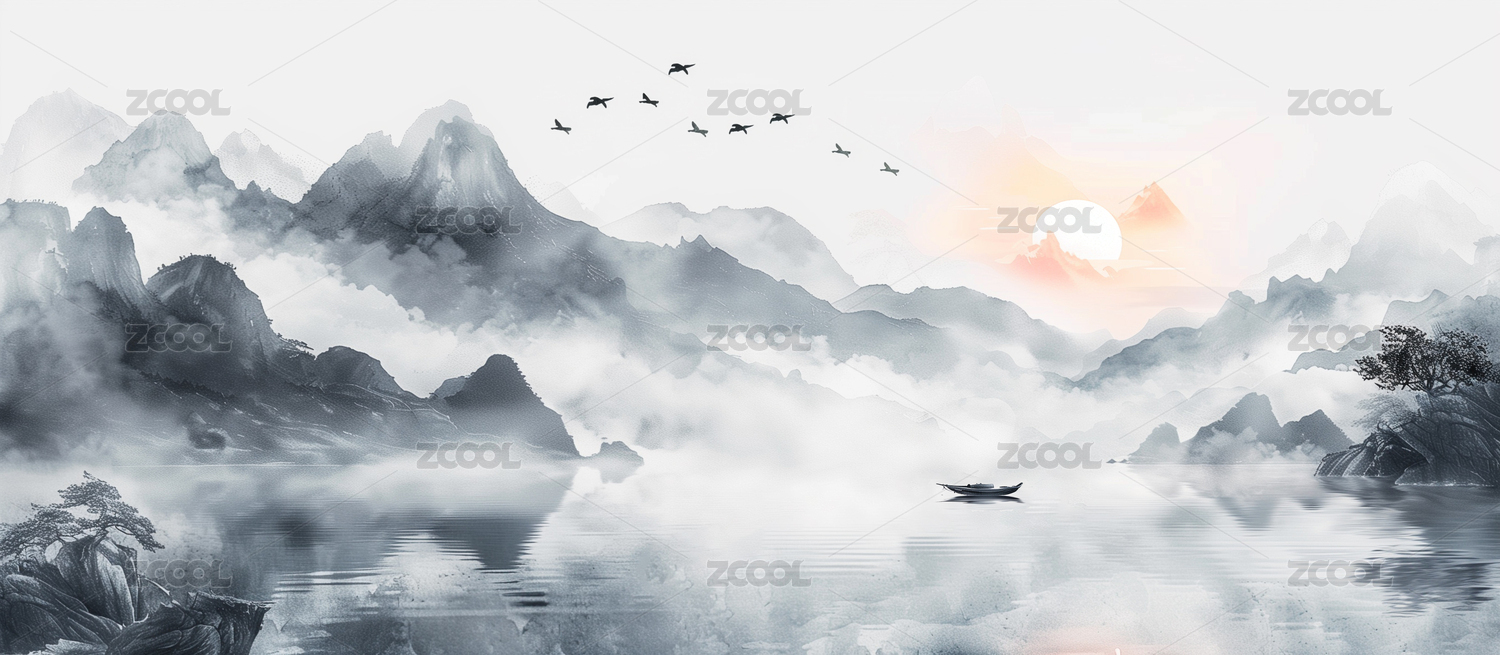 新中式意境山水画背景图