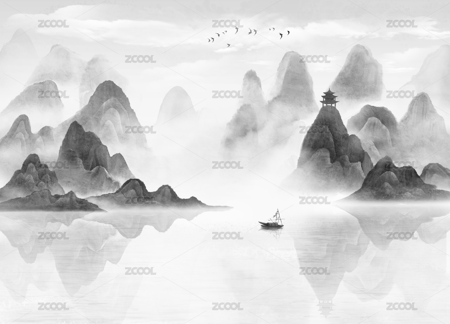 黑白水墨山水