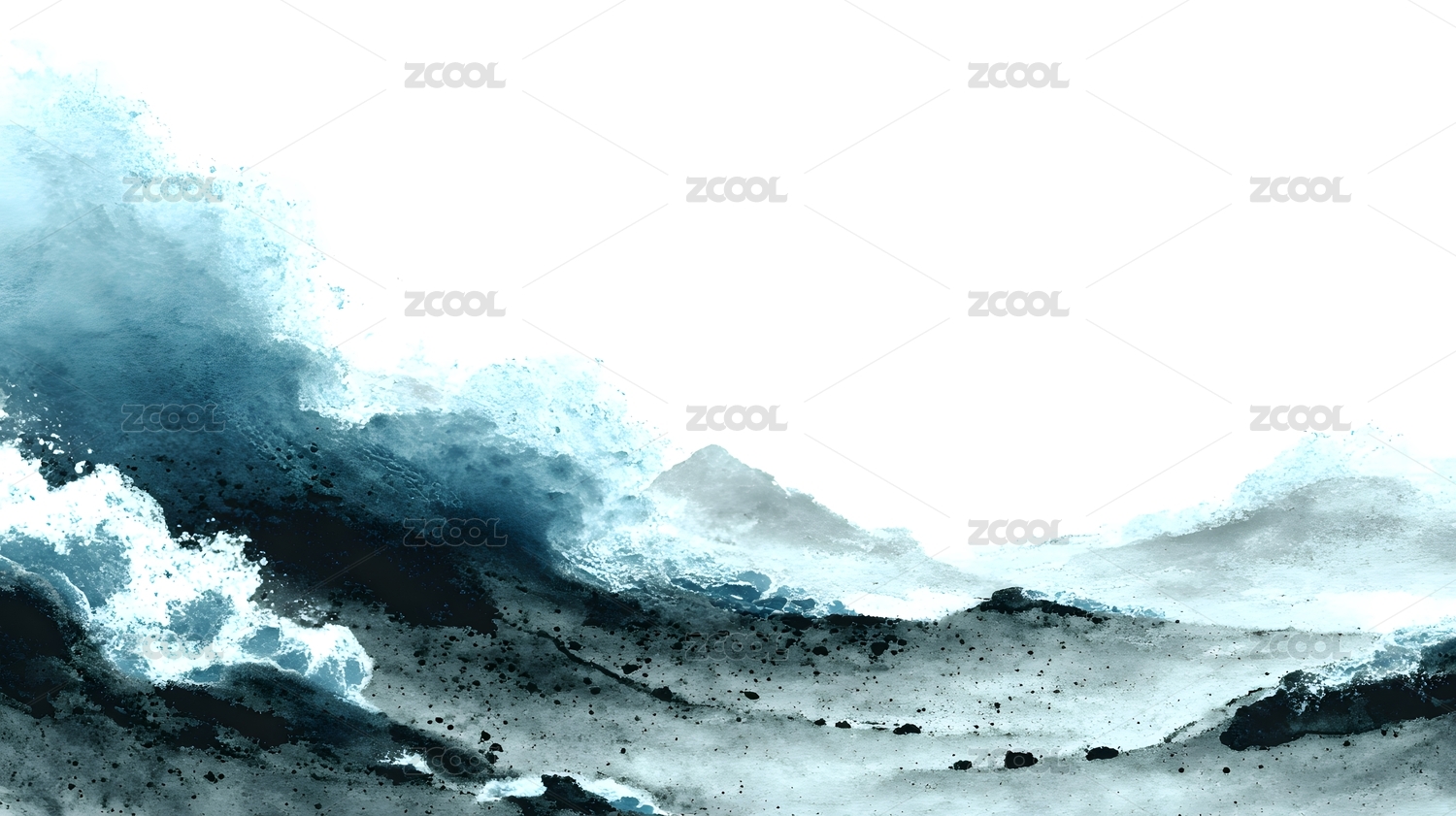 水墨巨浪席卷山川,意境朦胧