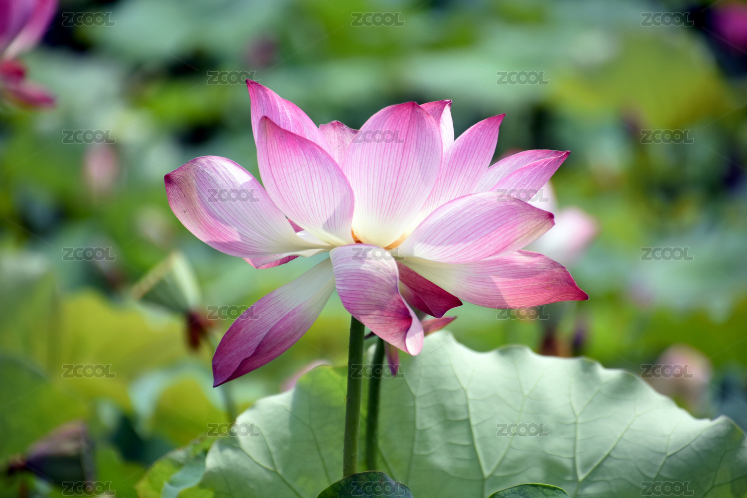 荷塘中六月正在盛开的粉色荷花