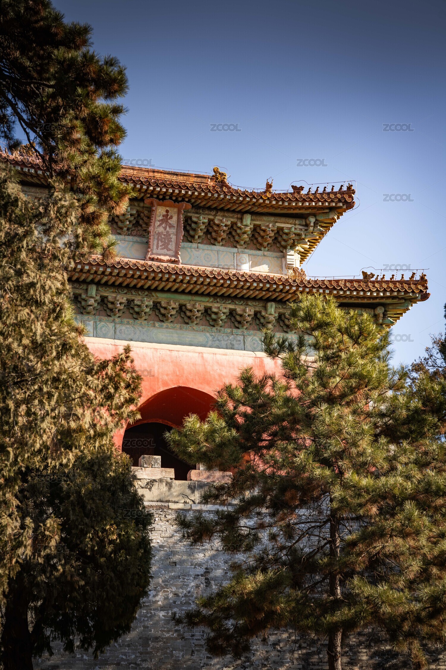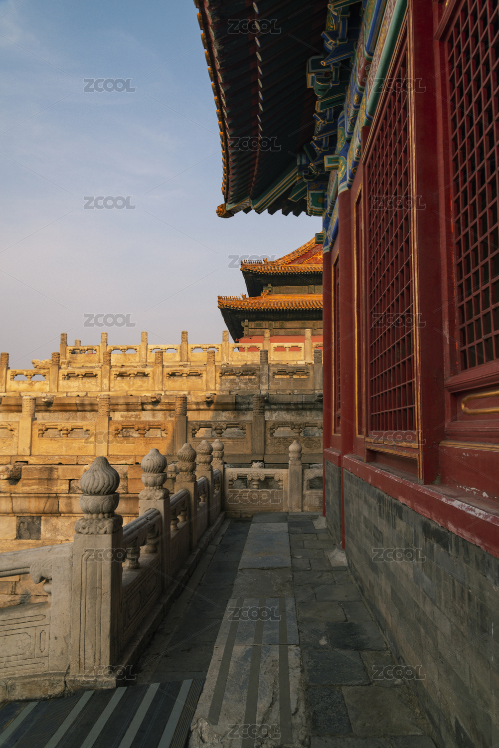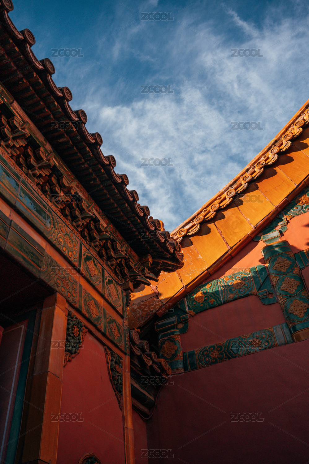 蓝天白云映衬下的北京故宫斑驳的红墙