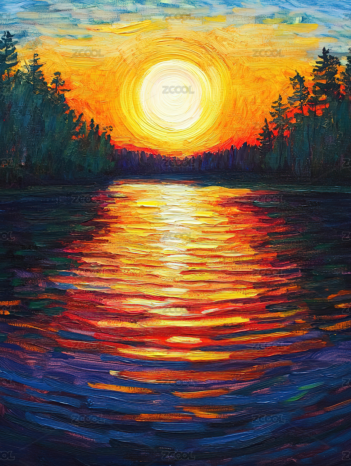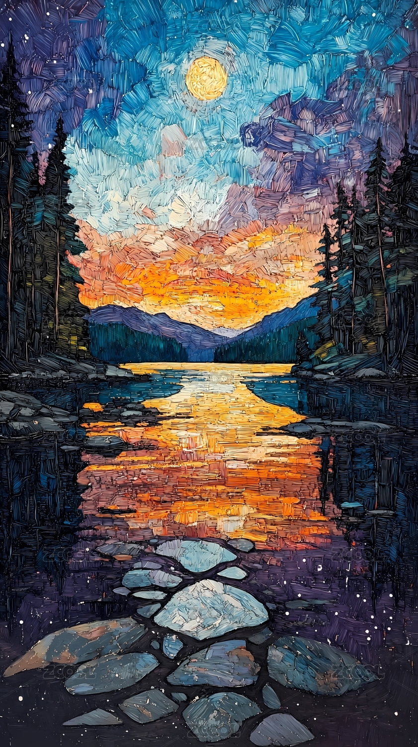 印象派风景抽象海报背景装饰画