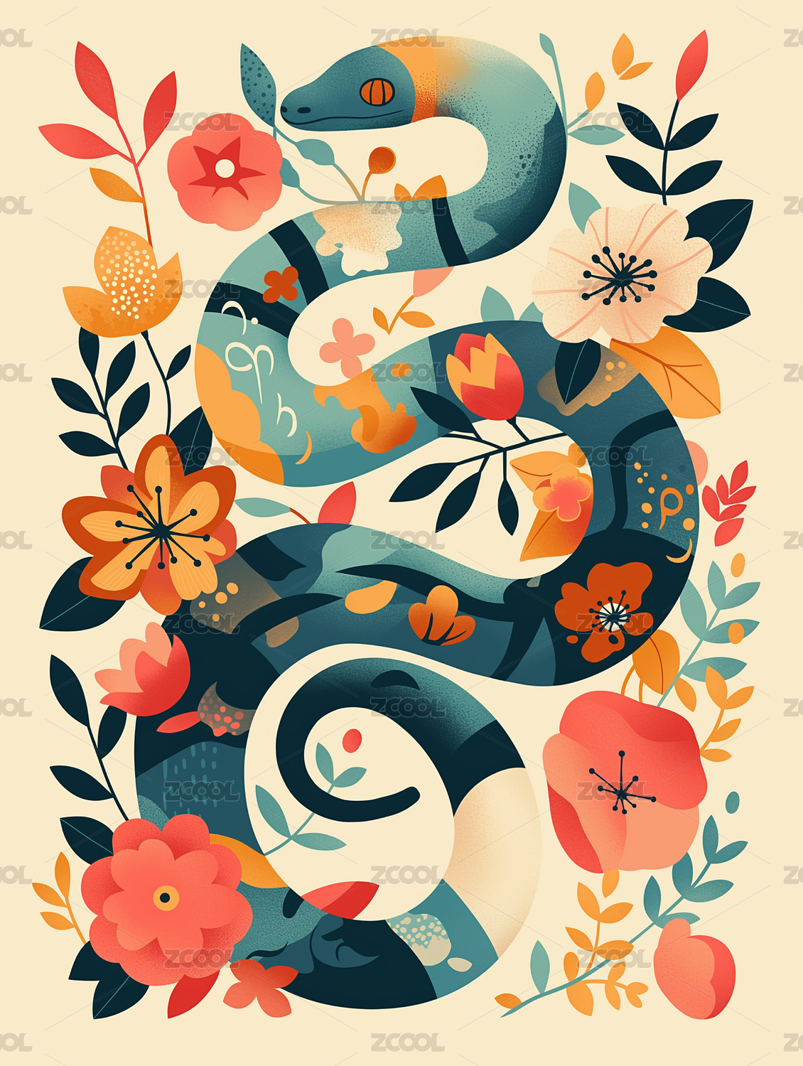 蛇年贺图,装饰蛇,乙巳蛇年,装饰画