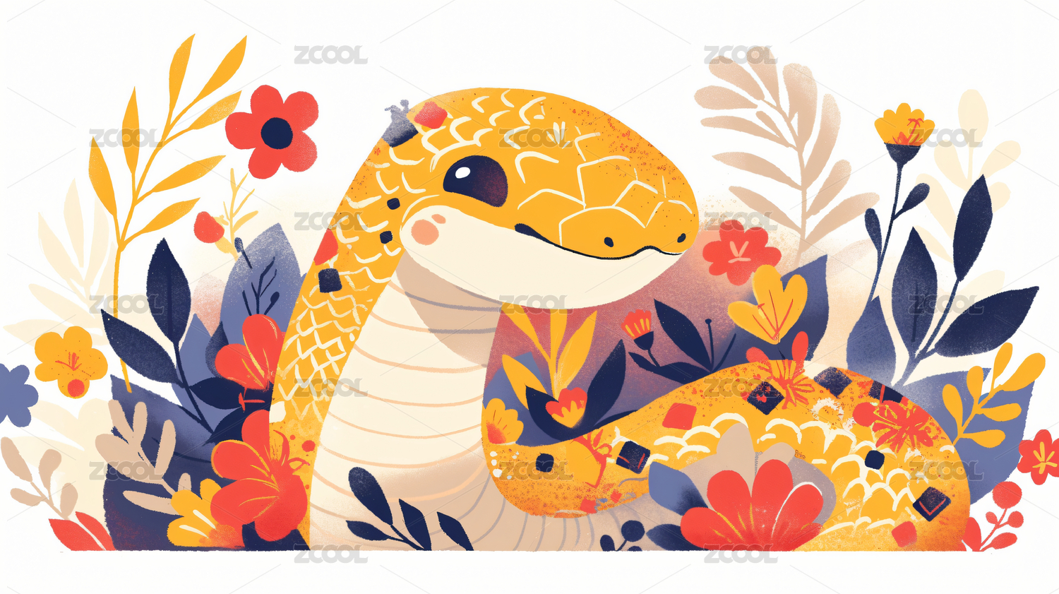 扁平风,蛇,插画,2025,蛇年,矢量,动物