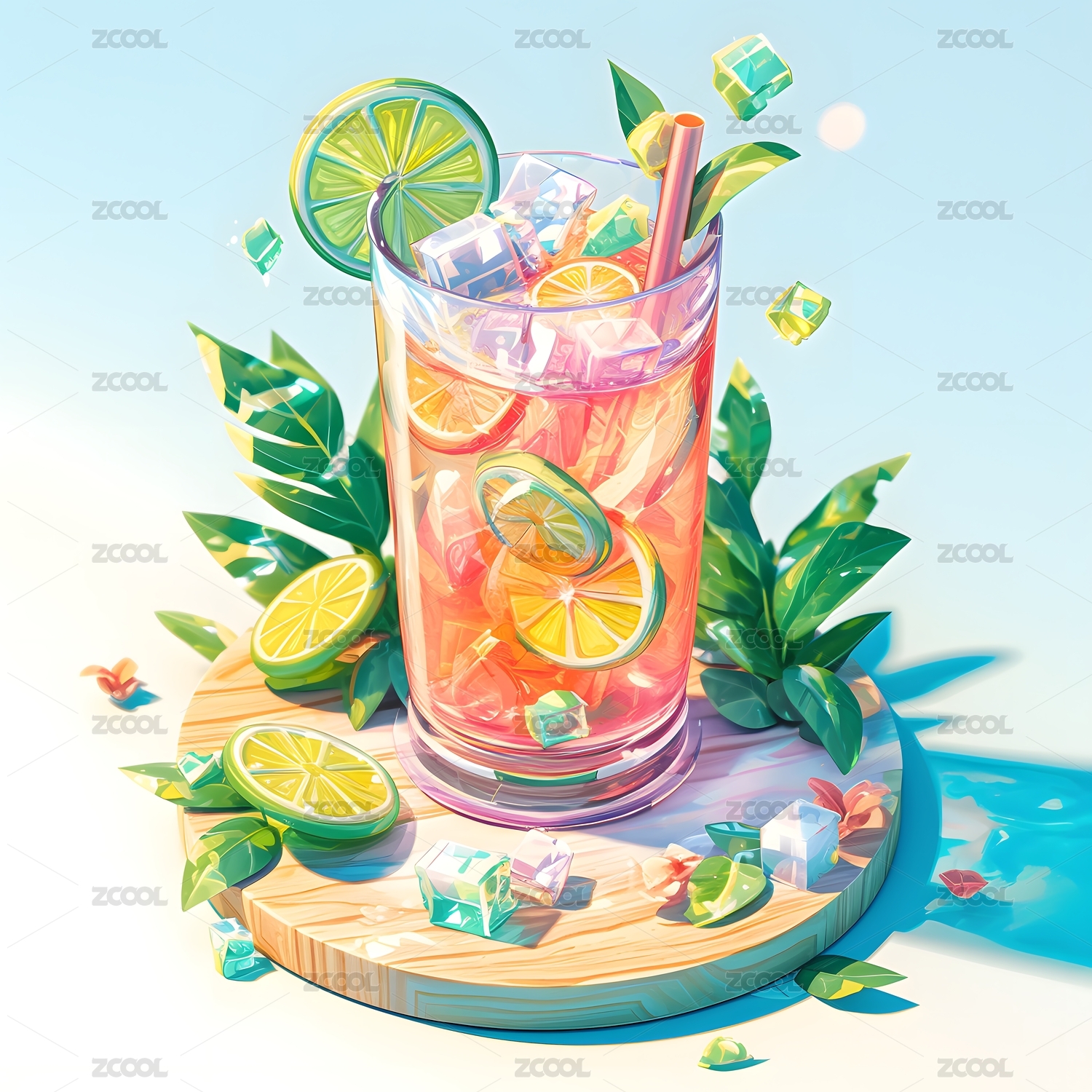 饮品,夏日,3D,饮料,柠檬水,柠檬茶,柠檬,水果茶,叶子