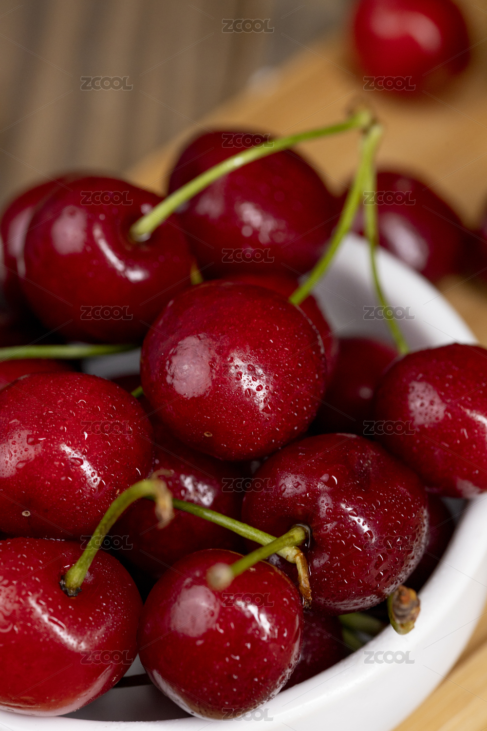 木纹盘上的大樱桃