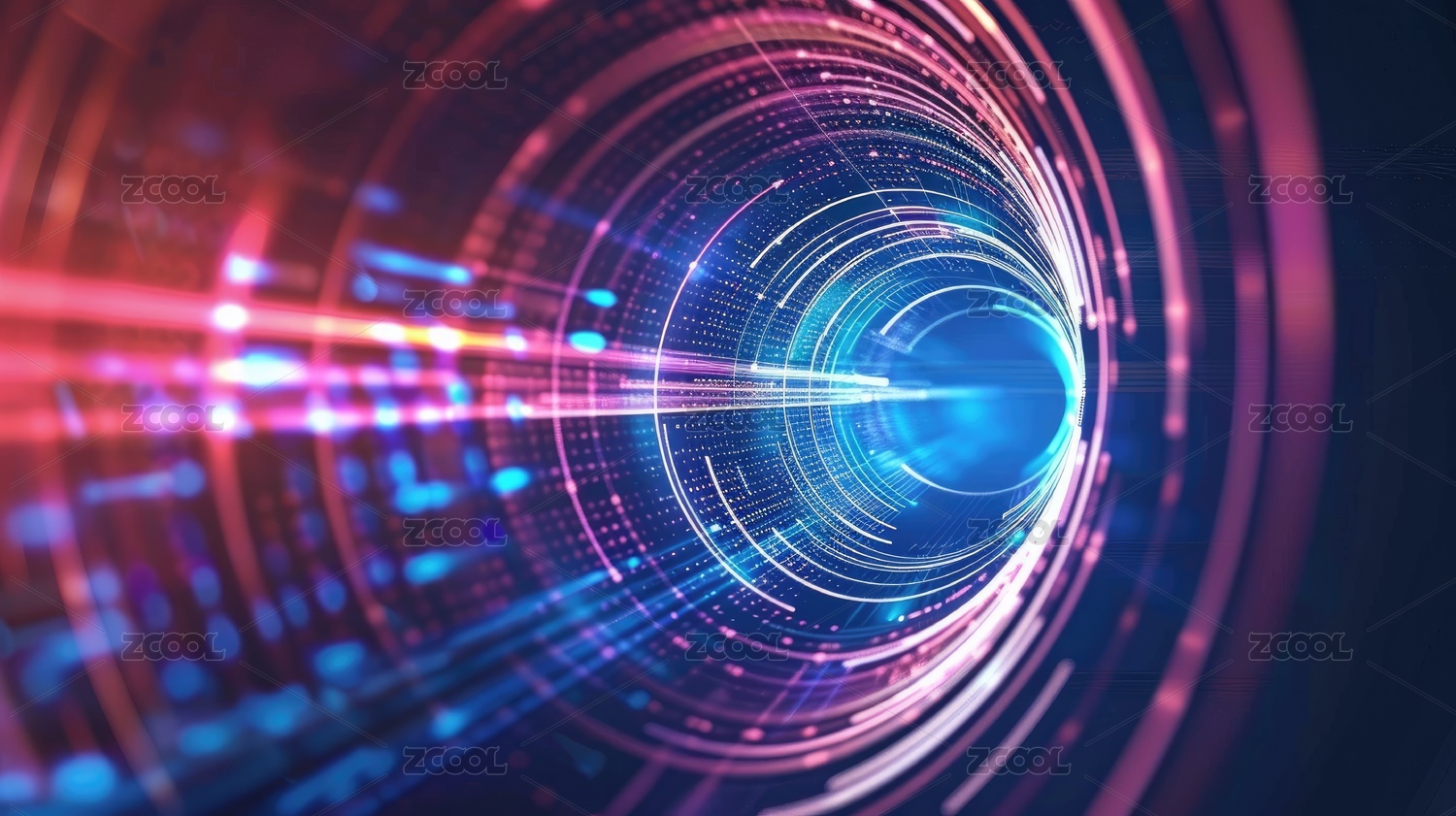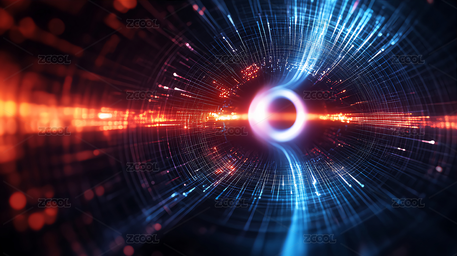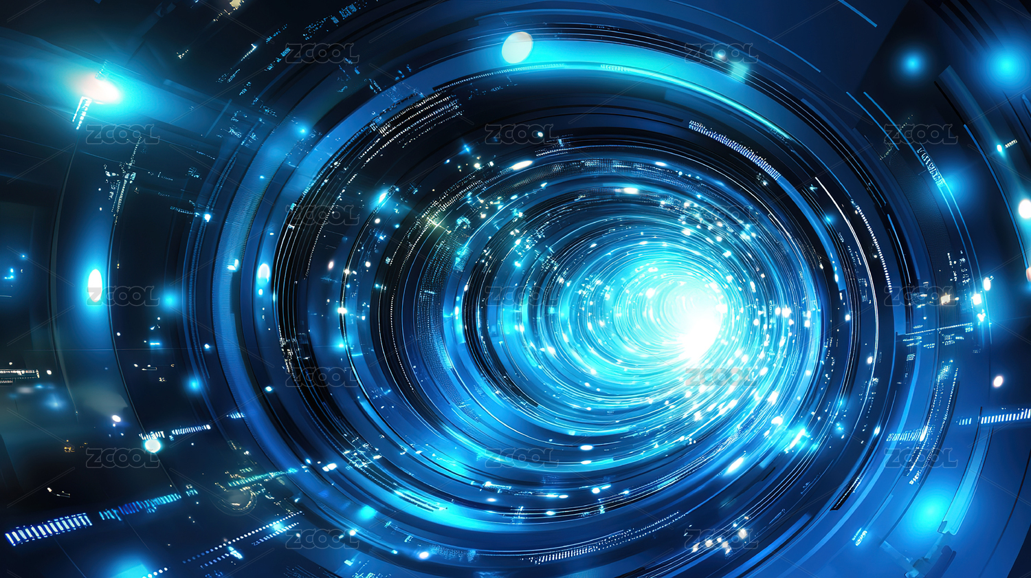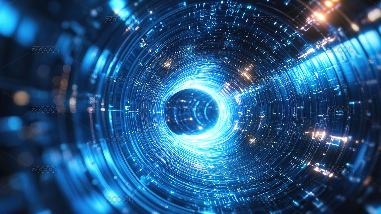 蓝色能量粒子隧道模糊散景发光明亮抽象背景