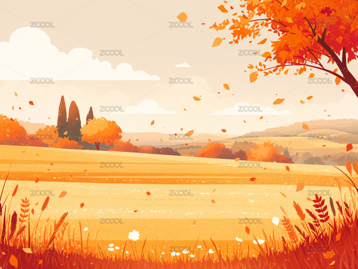秋天秋季立秋秋分自然户外风景卡通漫画插画