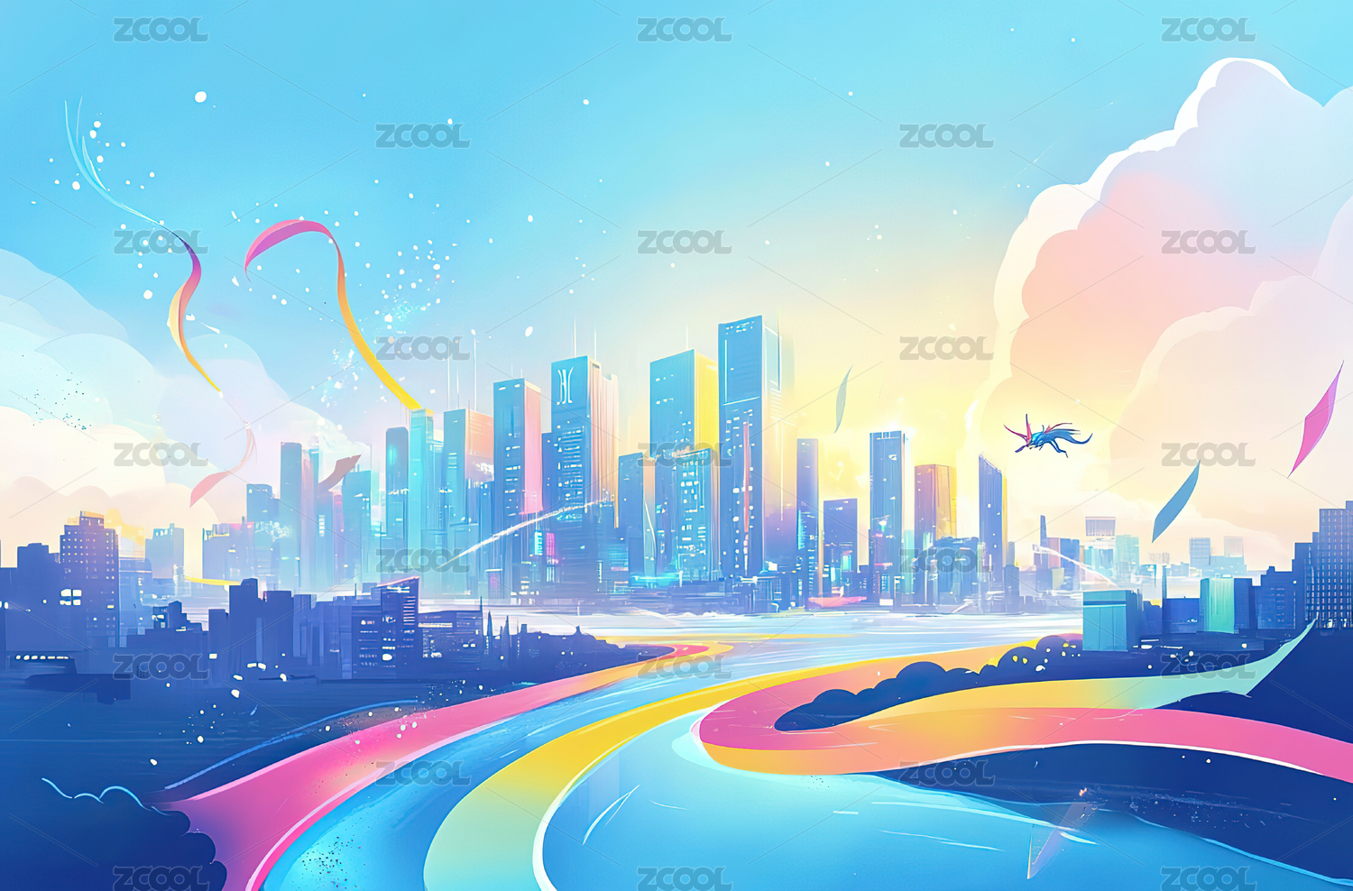 唯美城市建筑插画