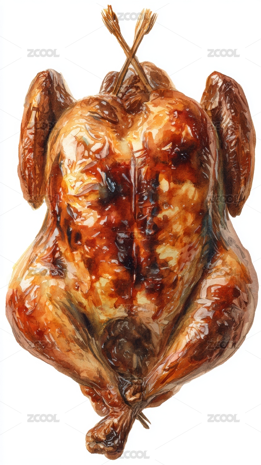插画,食物,食品,白色背景,水彩,油画,美味,美食,鸡肉,烤鸡