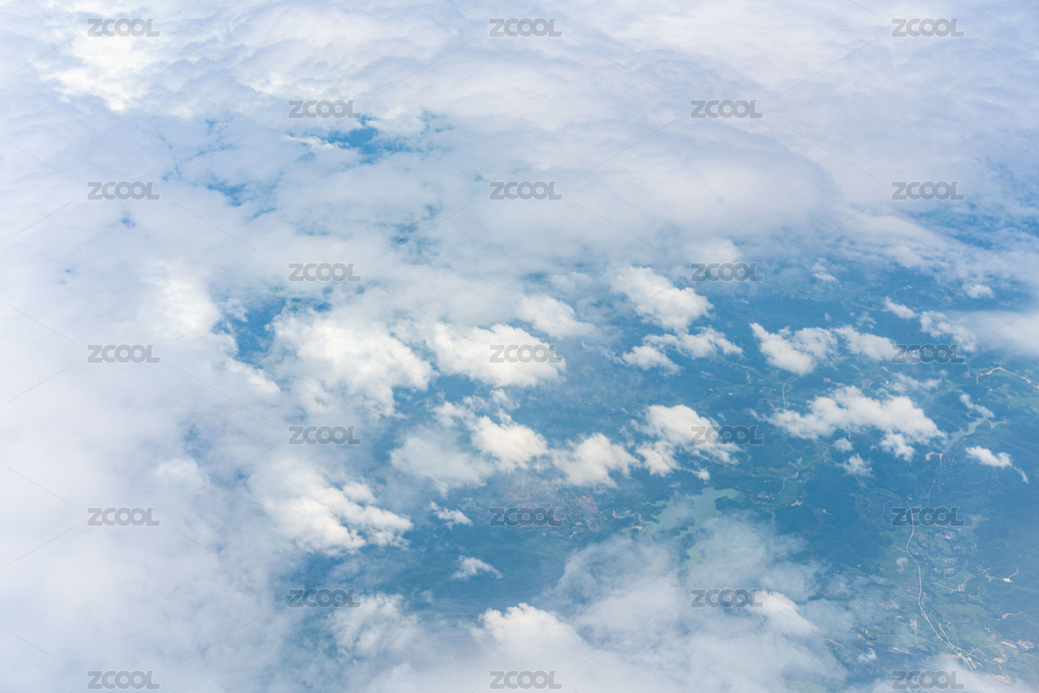 俯拍空中云团及地景