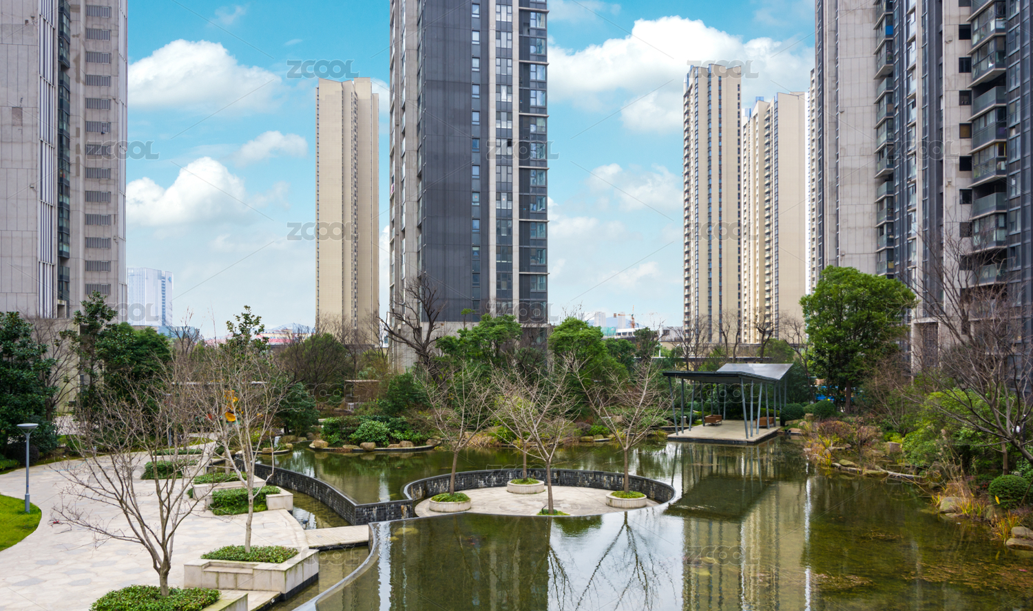 高层建筑中的园林景观与湖泊花园区
