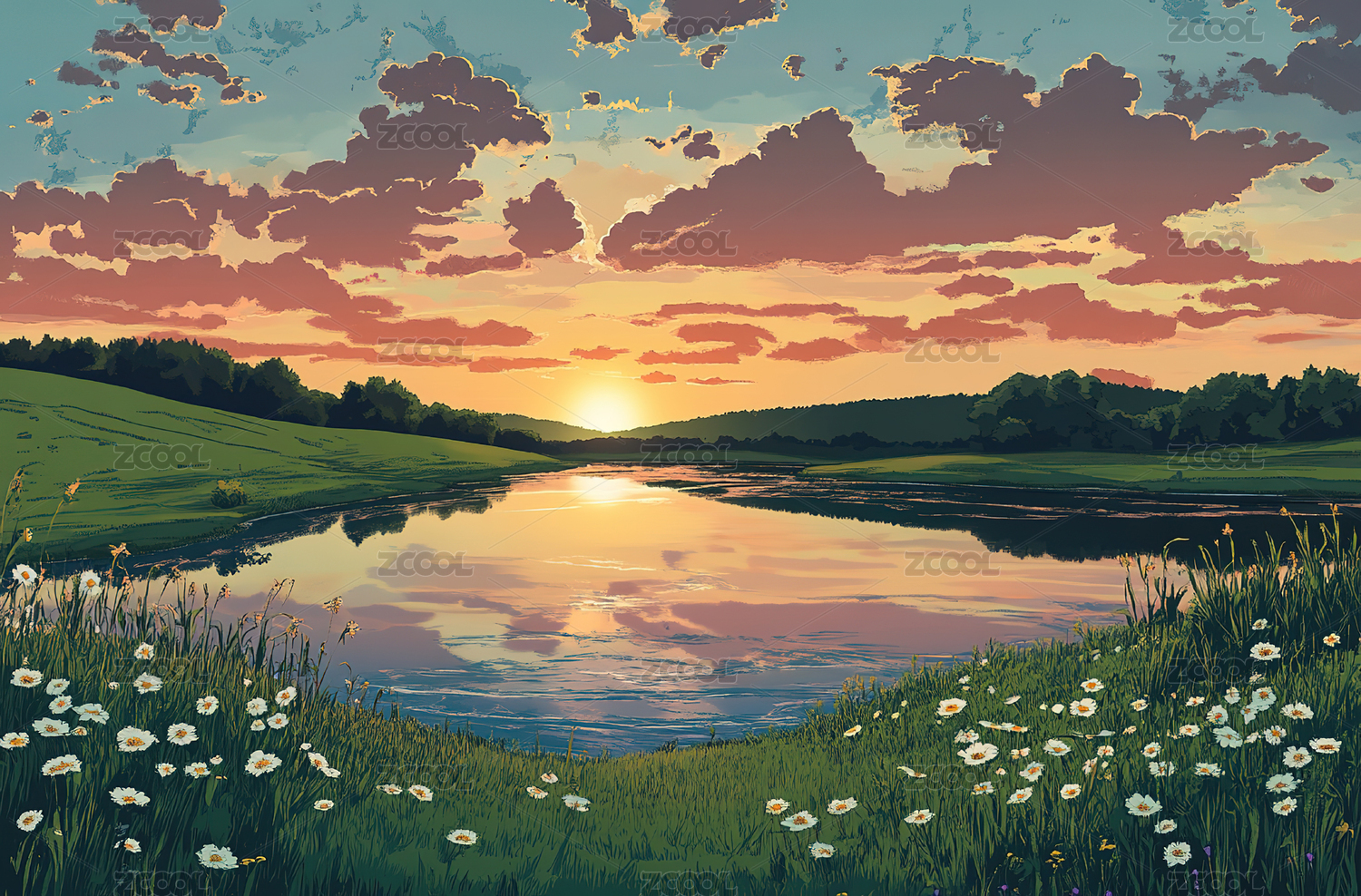 扁平肌理风景壁纸插画