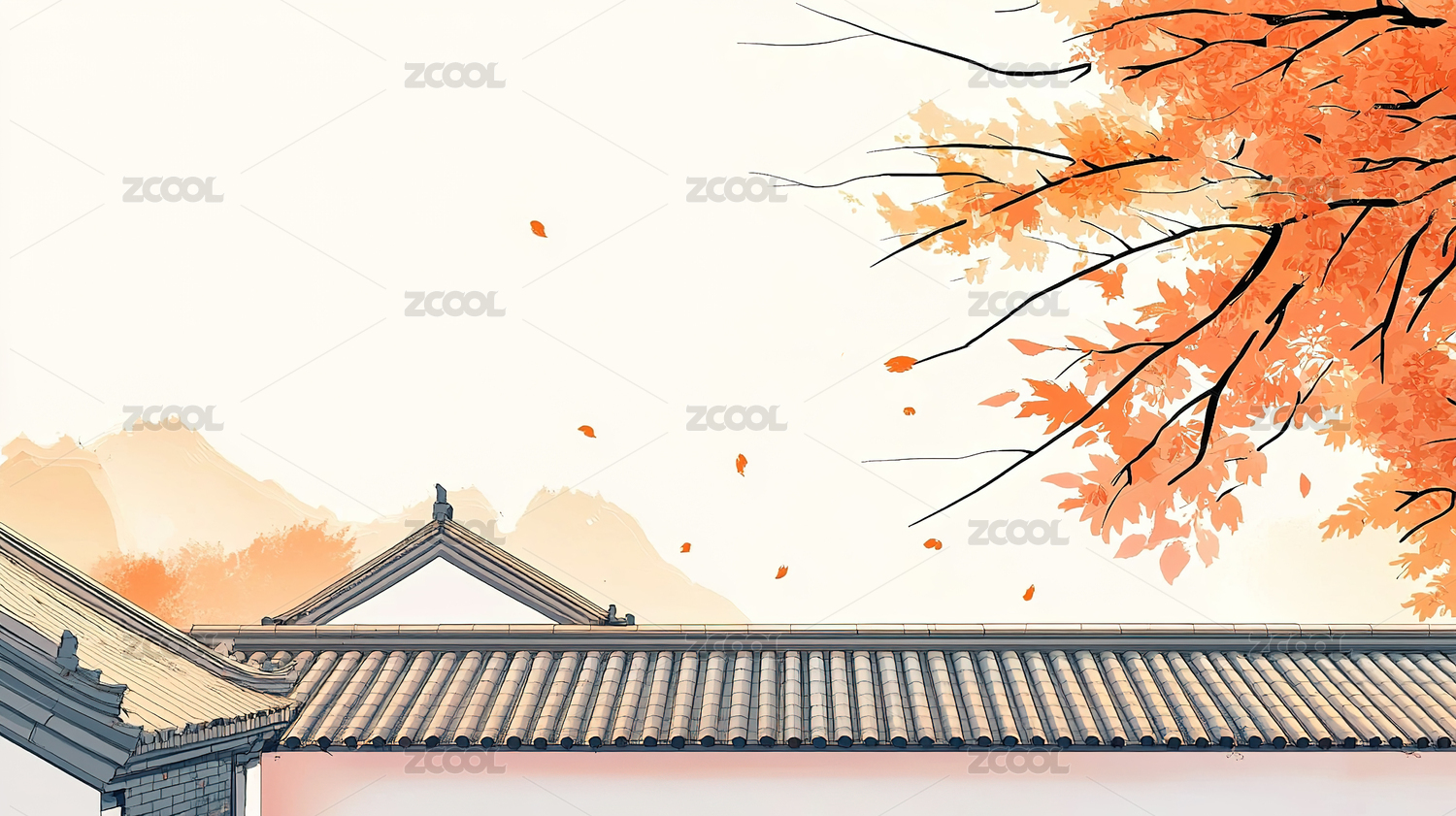 国潮水墨画秋天风景系列插画