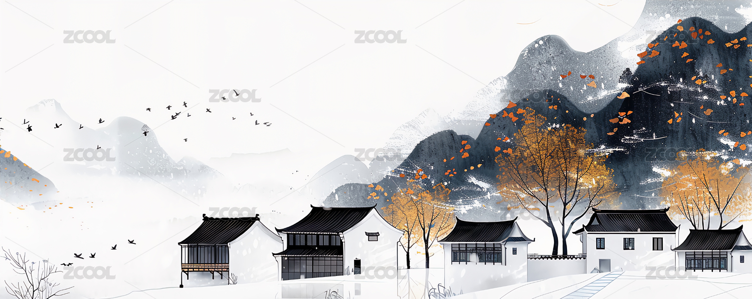 江南小镇微派建筑水墨画