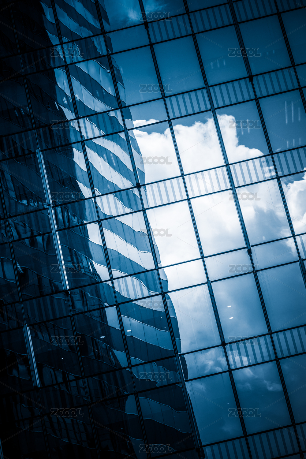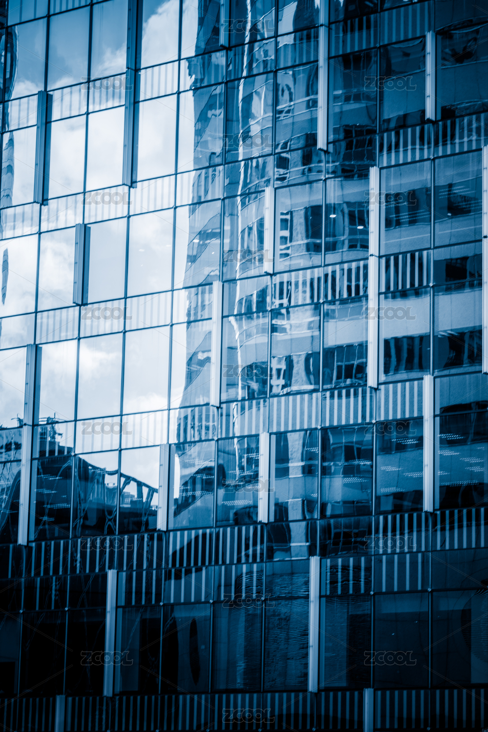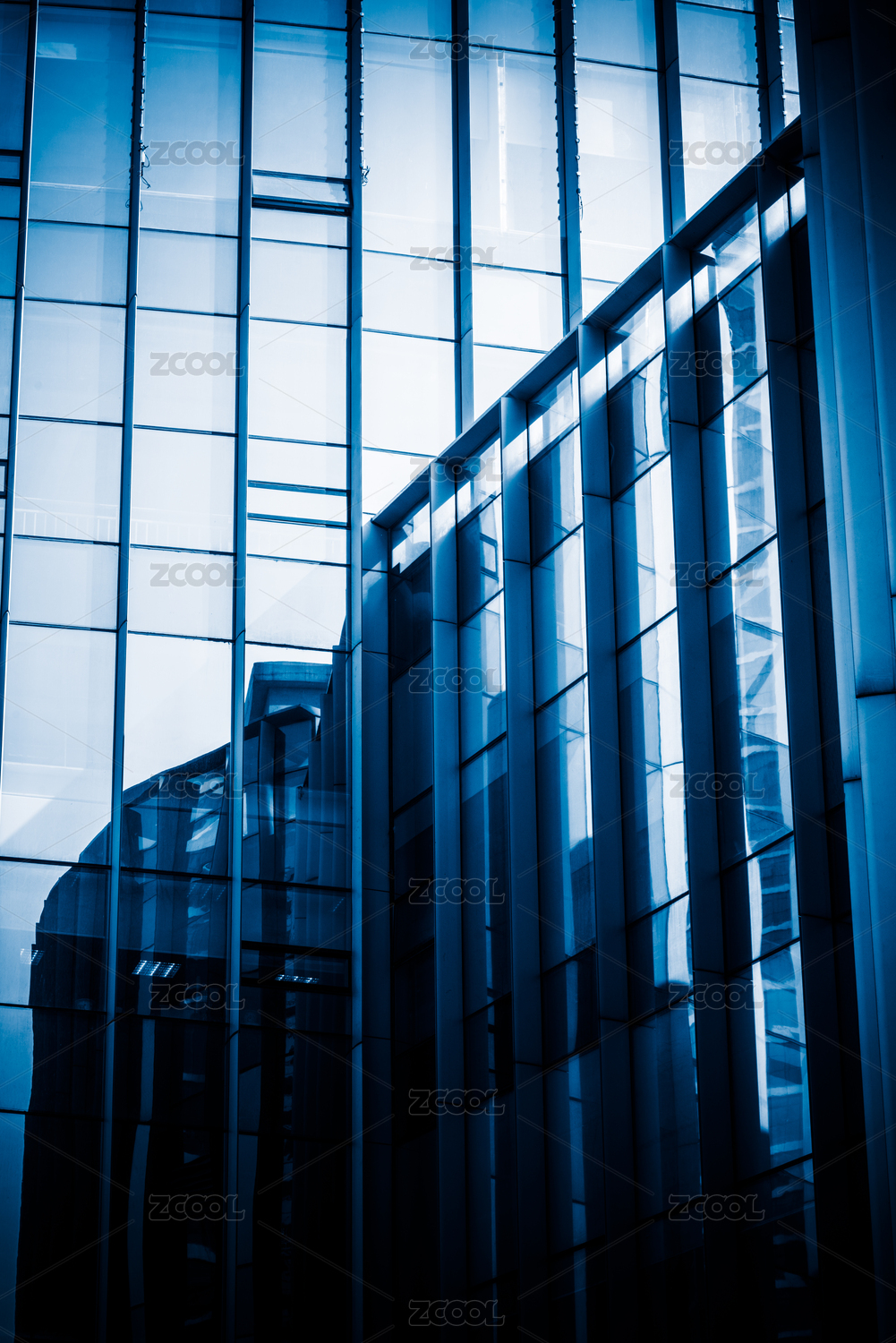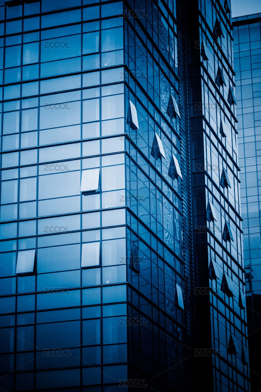 特写玻璃建筑立面在上海,china.blue色调图像。