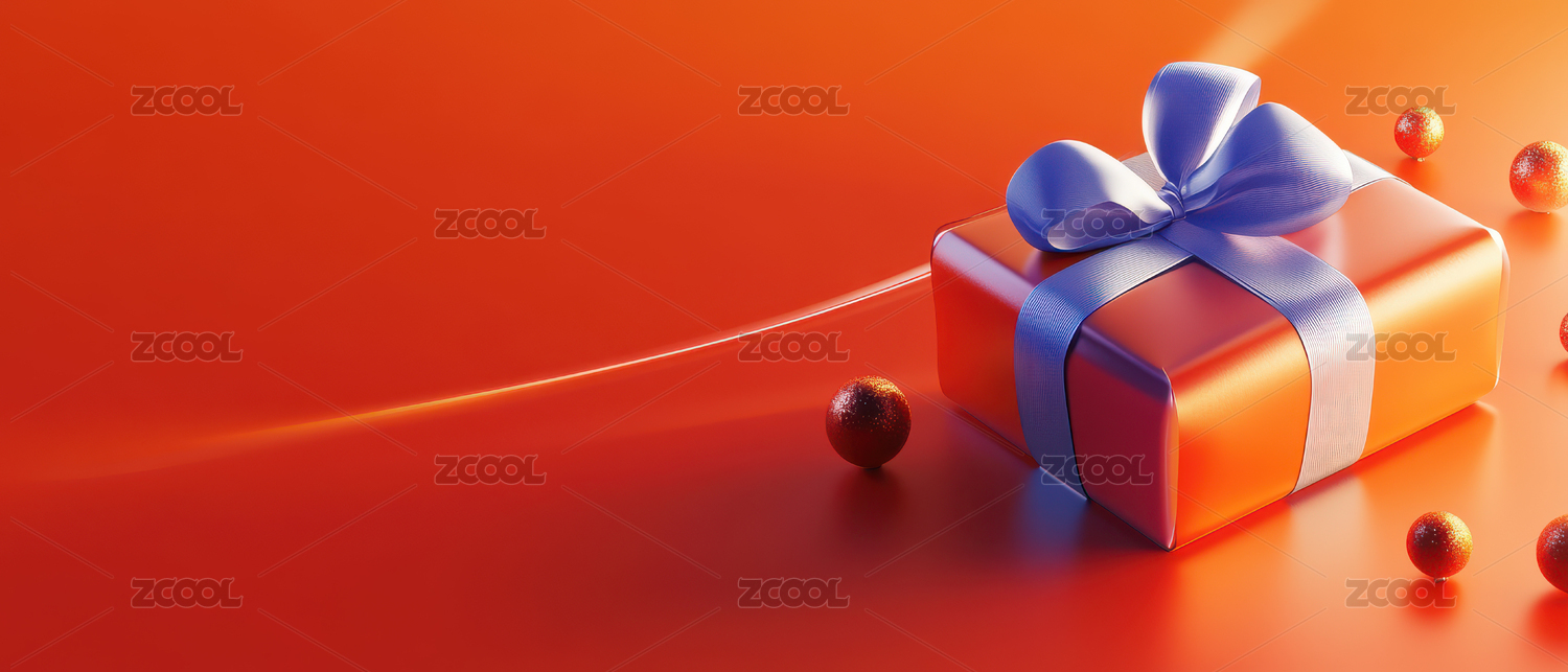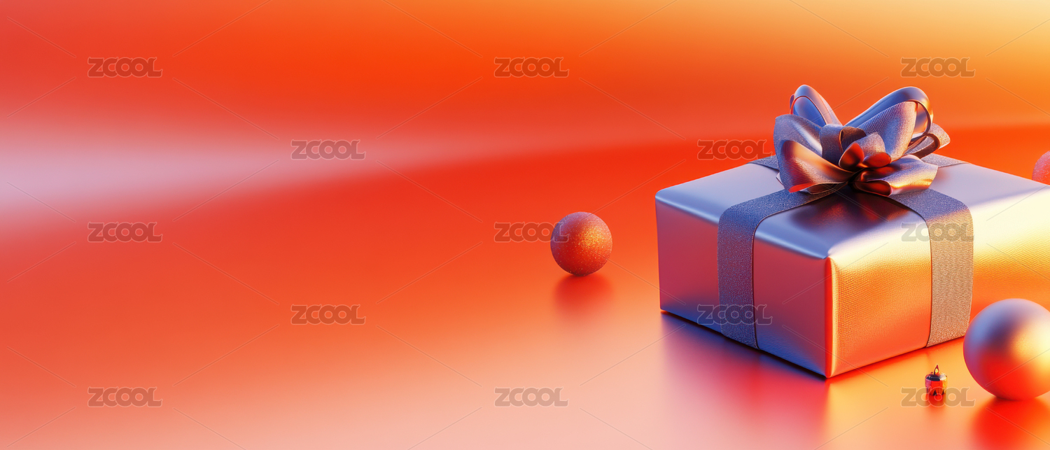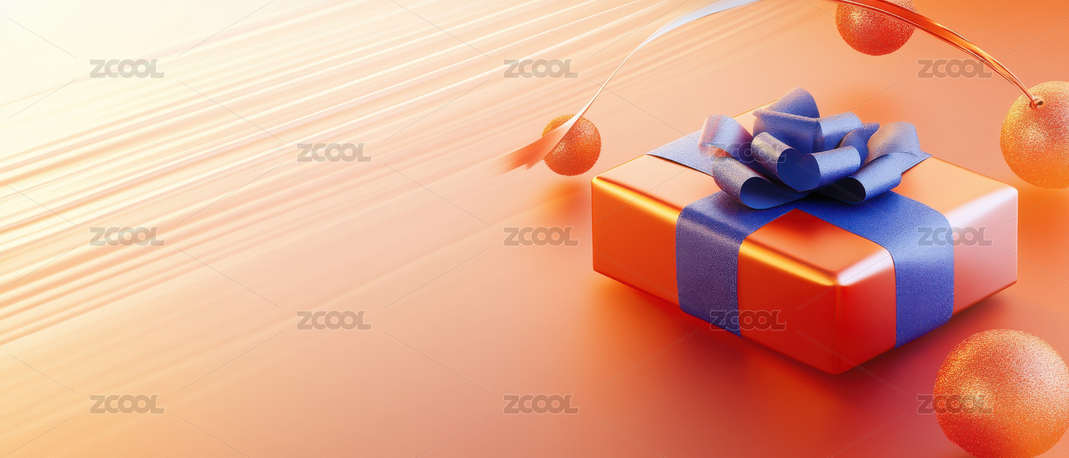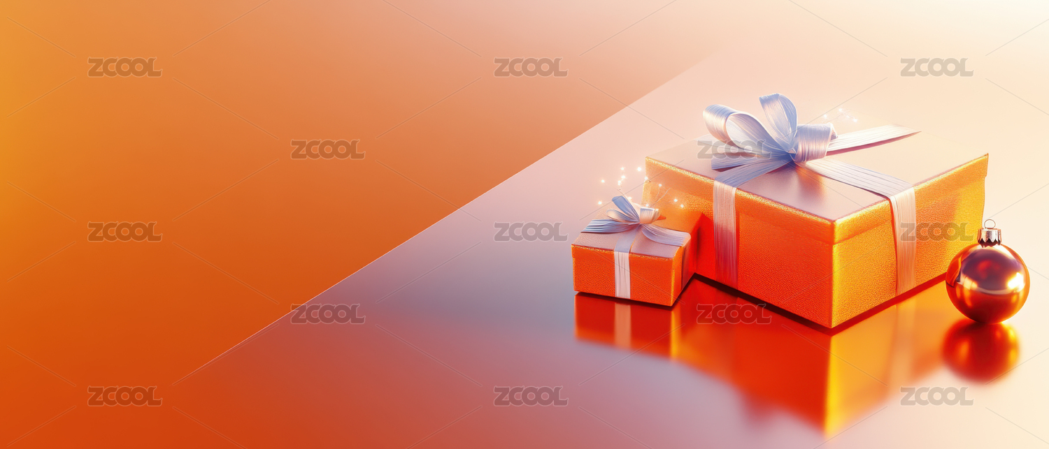 橙色礼盒与银色丝带