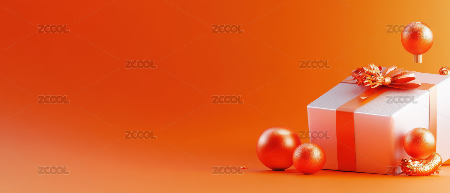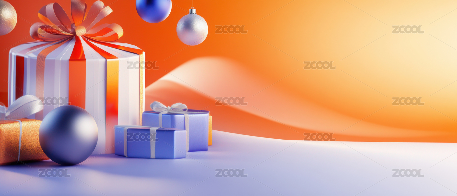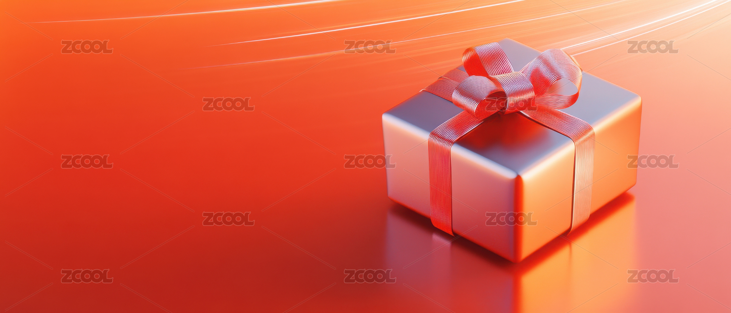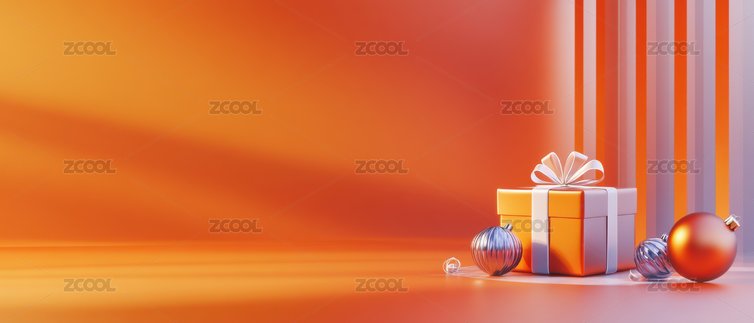 橙色礼盒与银色丝带