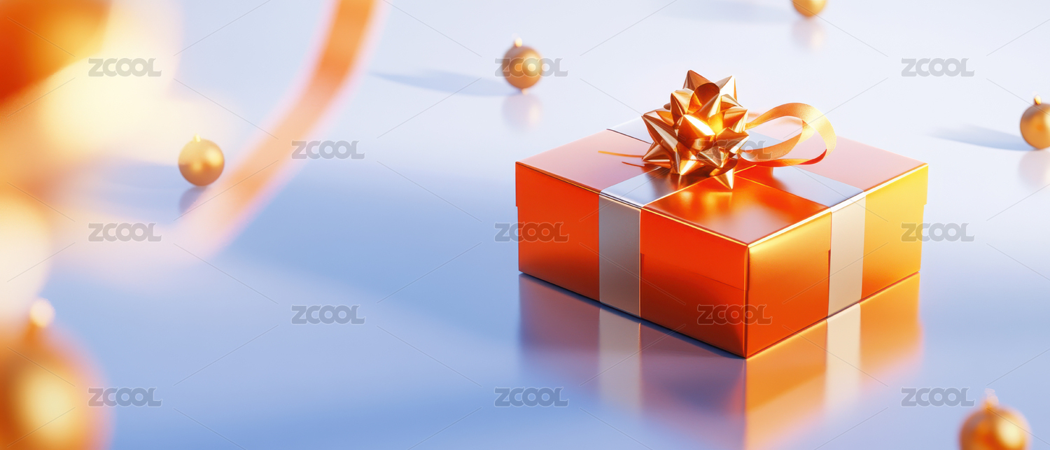 橙色礼盒与金色蝴蝶结