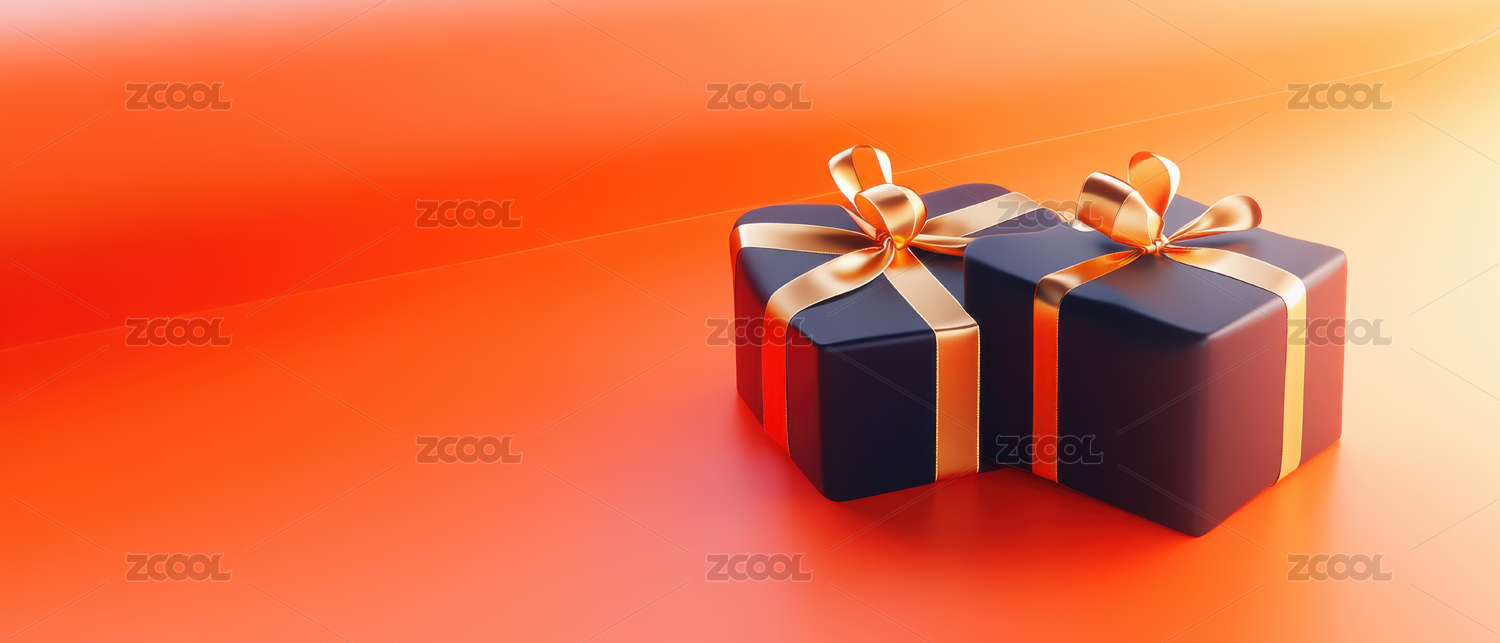 橙色背景上的黑色礼盒