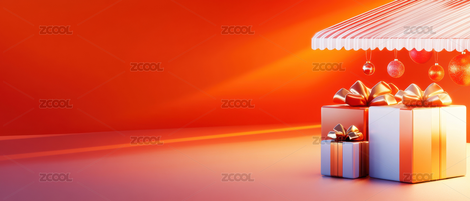 红金色3D立体玻璃质感礼盒背景