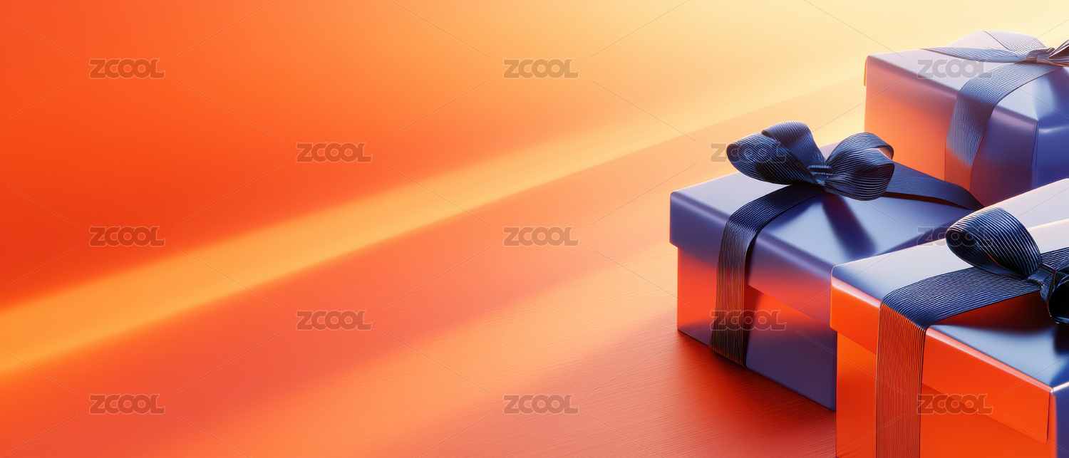 橙色礼盒与蓝色蝴蝶结